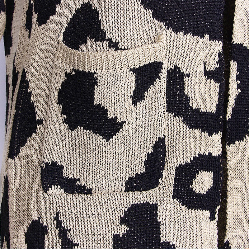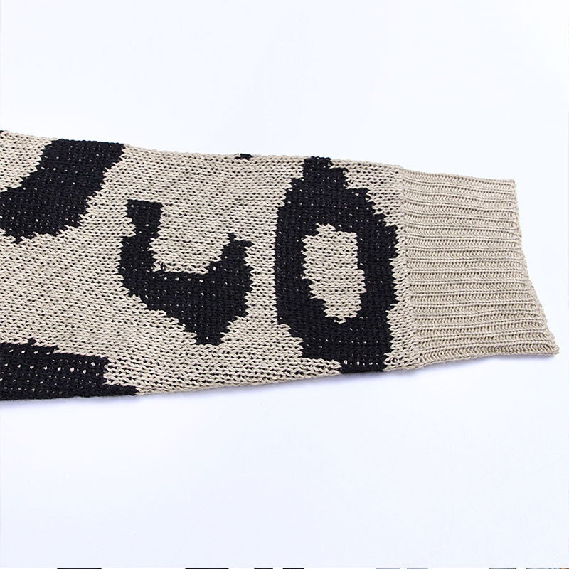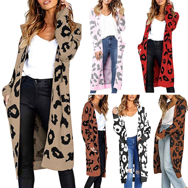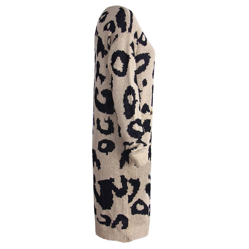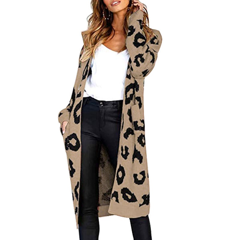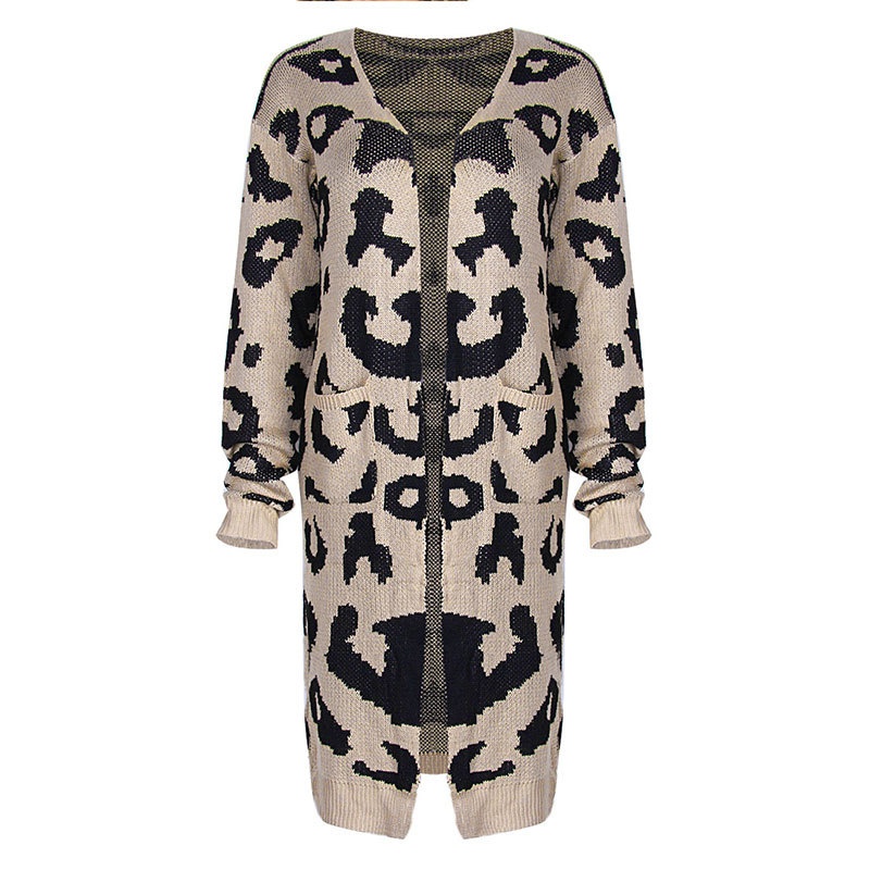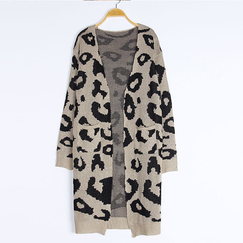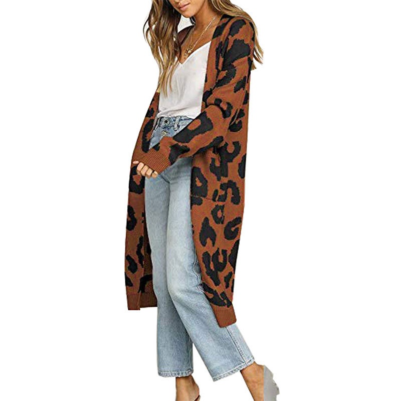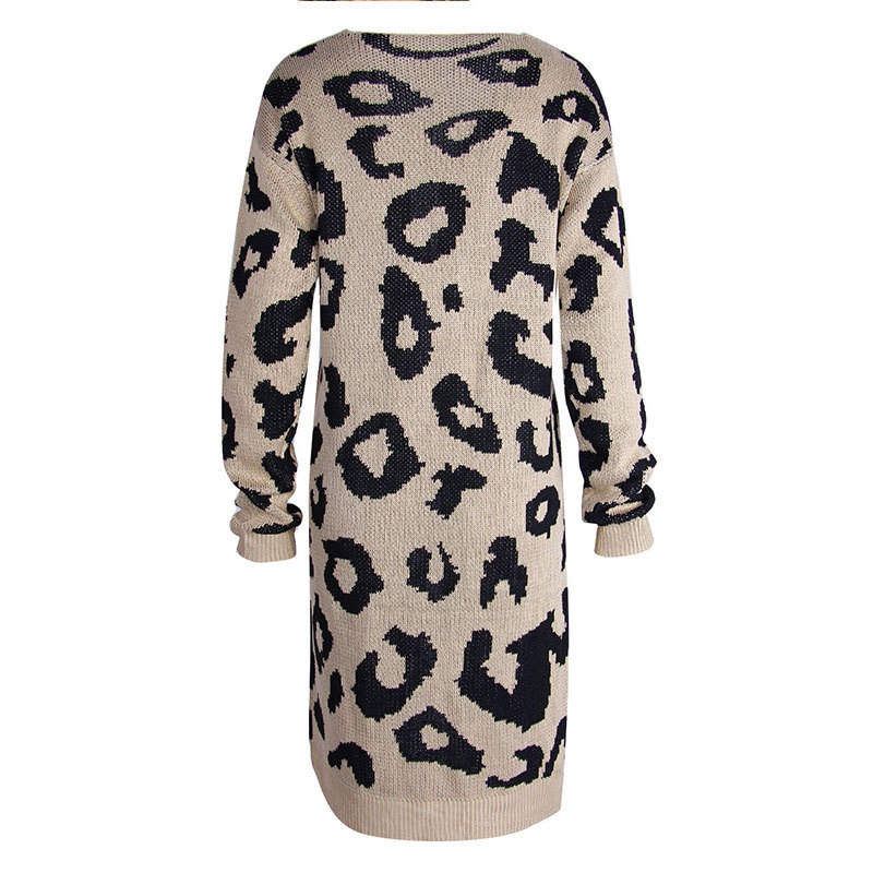 秋冬新款欧美毛衣女装跨境时尚宽松针织豹纹长款开衫外套女