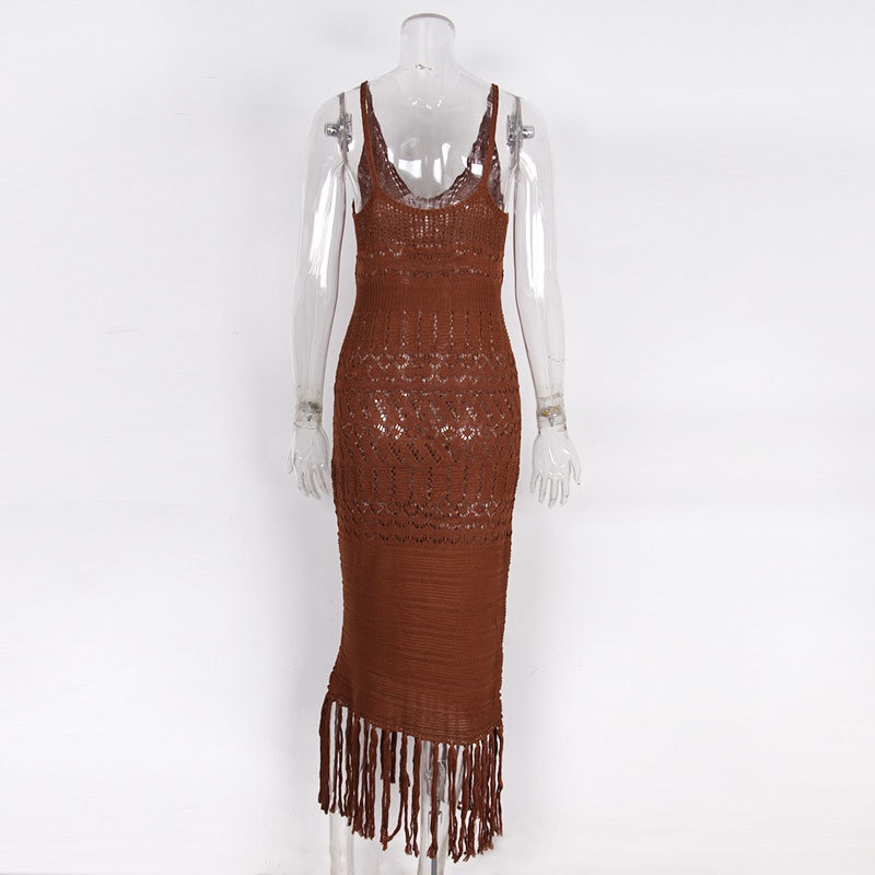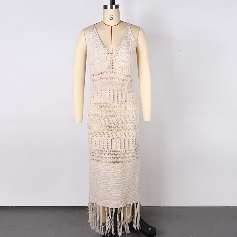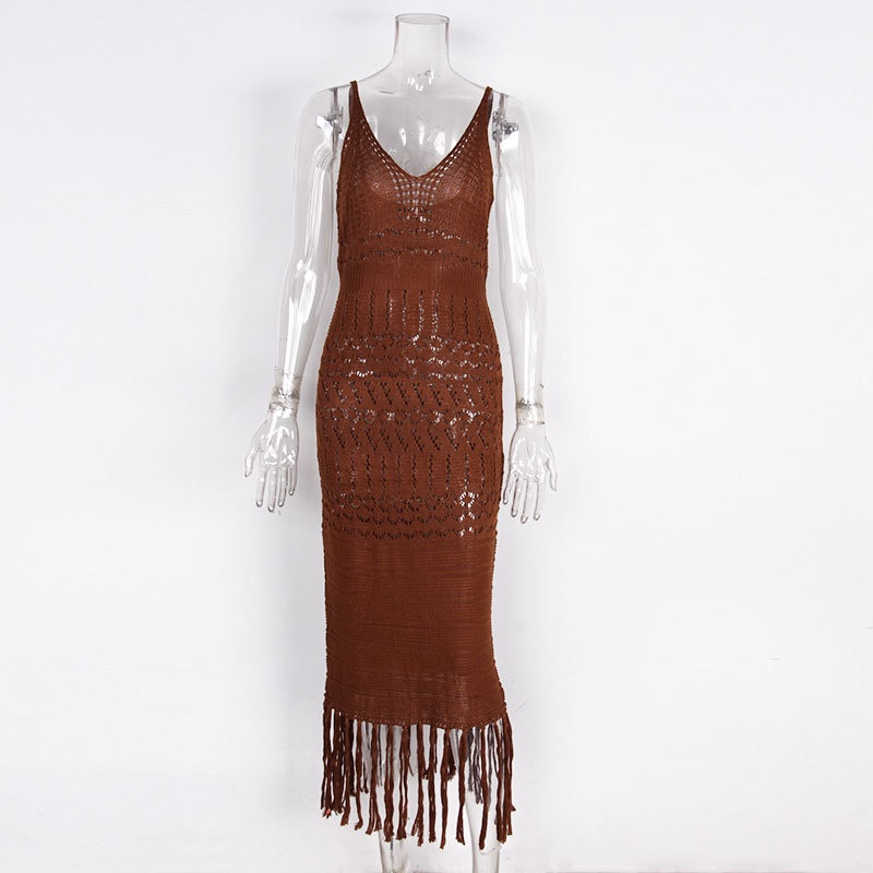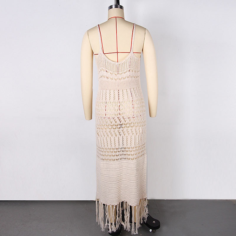 跨境欧美性感针织镂空流苏沙滩罩衫比基尼泳衣沙滩裙防晒衫