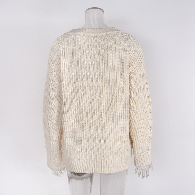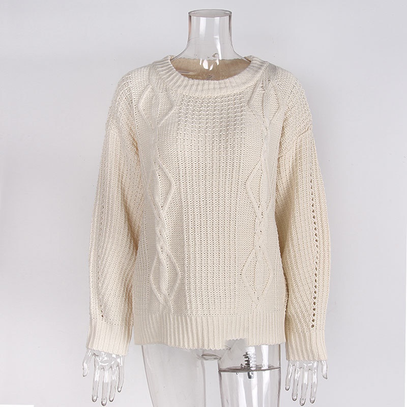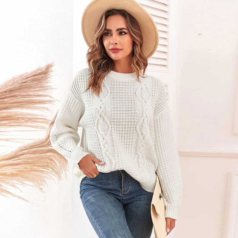 欧美秋冬纯色圆领长袖麻花套头上衣跨境休闲女装毛衣针织衫