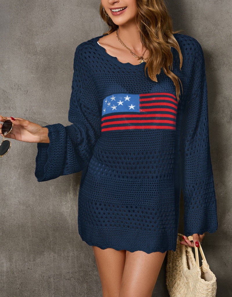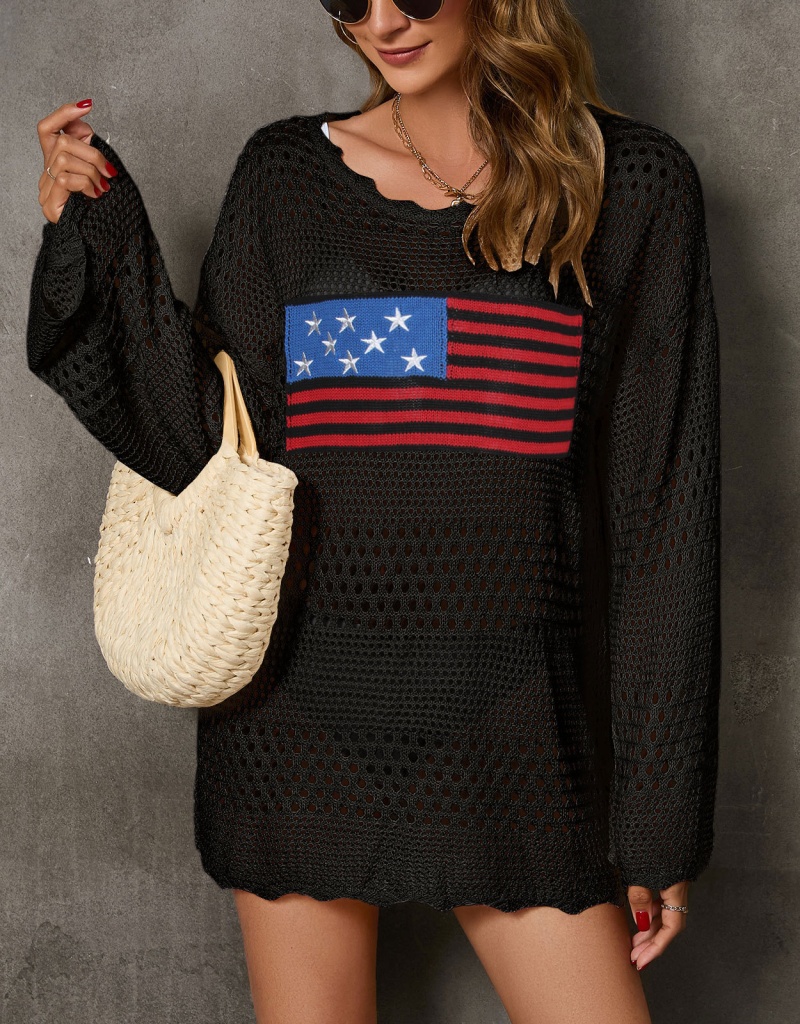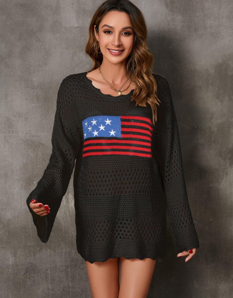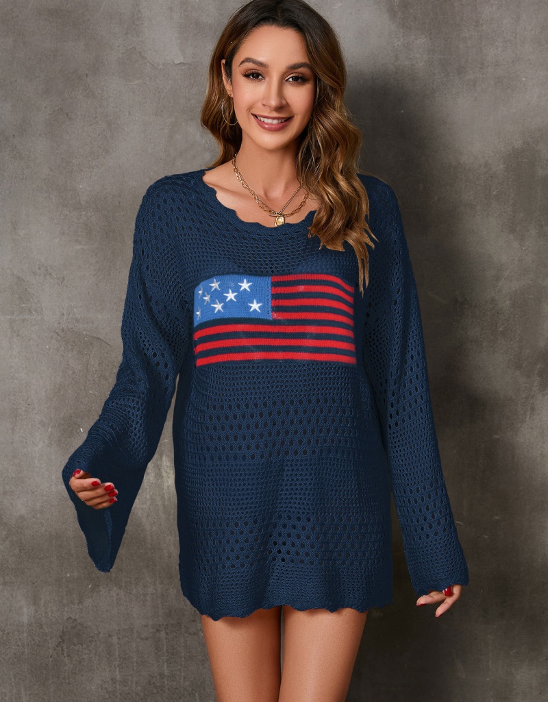 洋洋跨境新款Temu热卖圆领国旗欧美复活节独立日时尚罩衫女