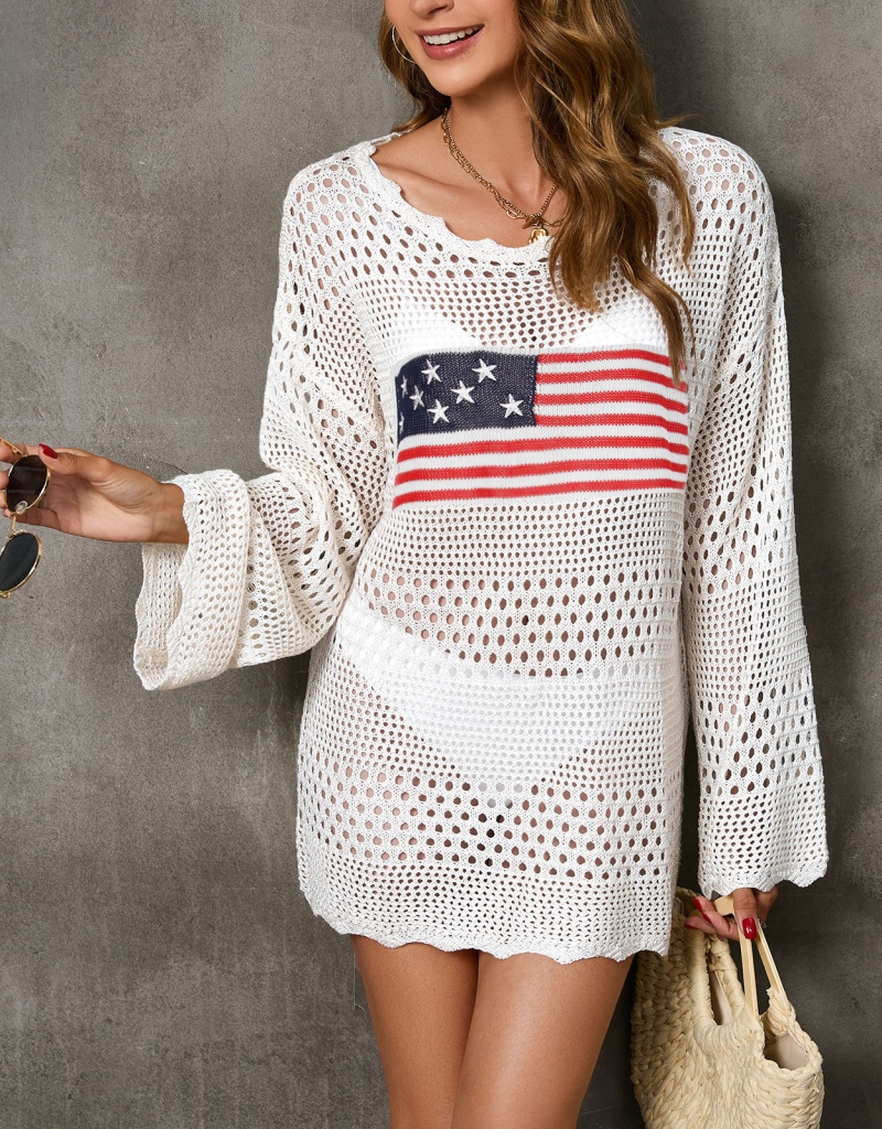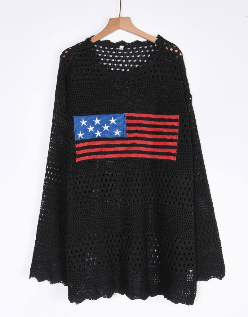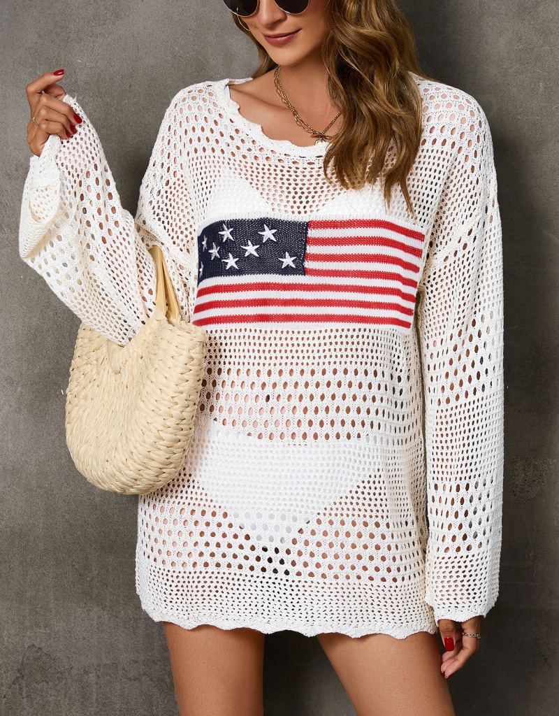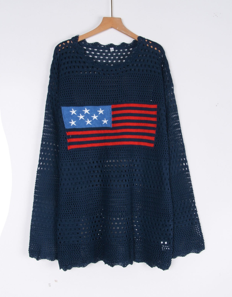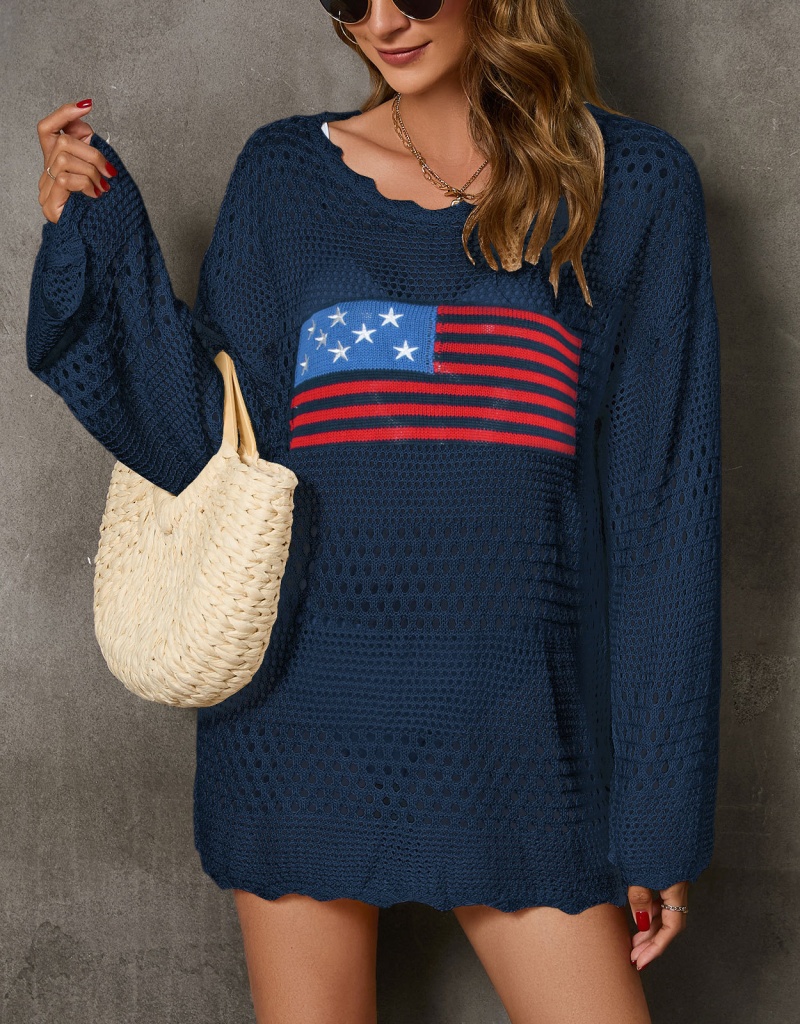 洋洋跨境新款Temu热卖圆领国旗欧美复活节独立日时尚罩衫女