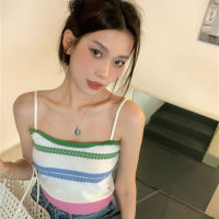 编织彩色条纹吊带小背心女港味chic复古气质短款高腰辣妹纯欲上衣
