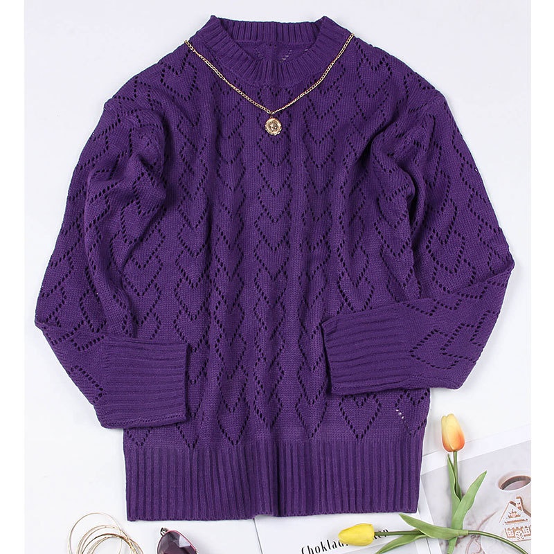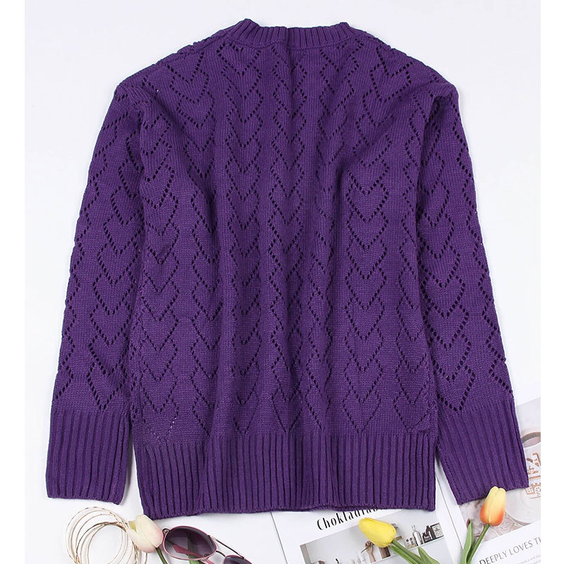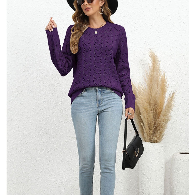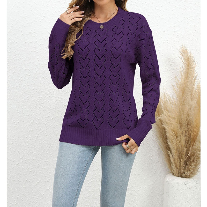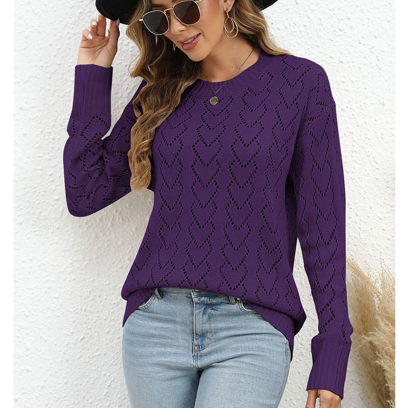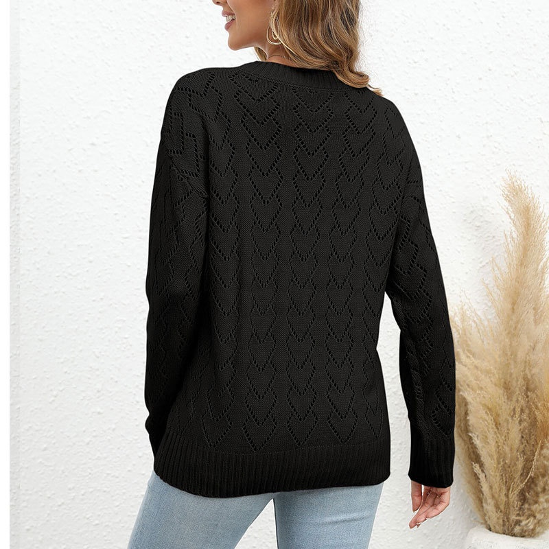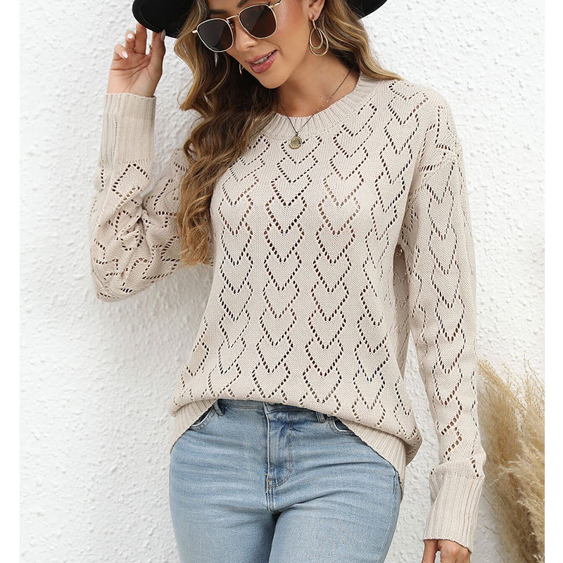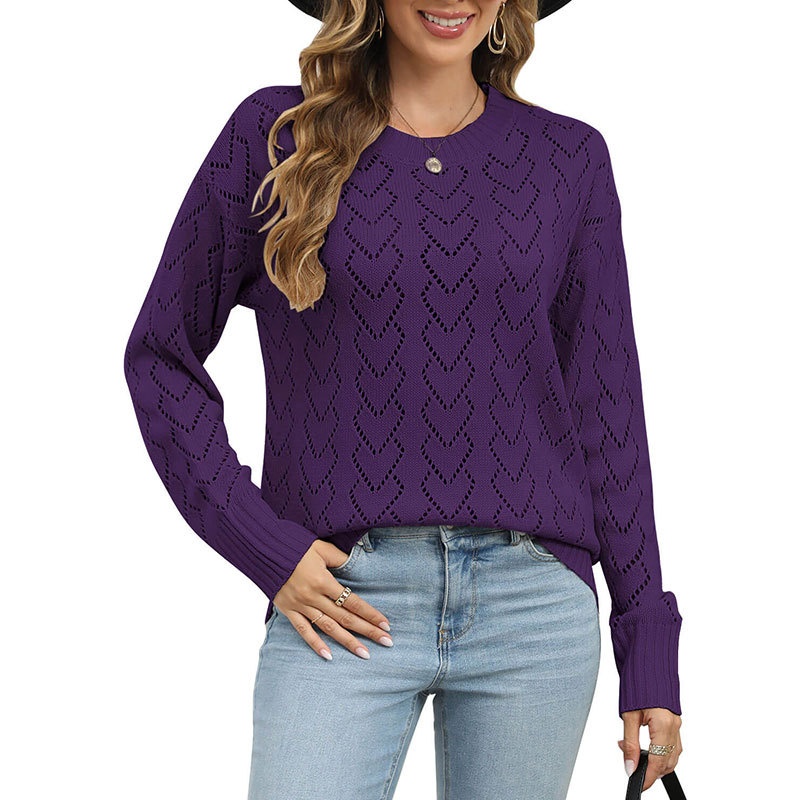 秋冬新款圆领爱心针织衫欧美跨境镂空套头长袖毛衣女装上衣