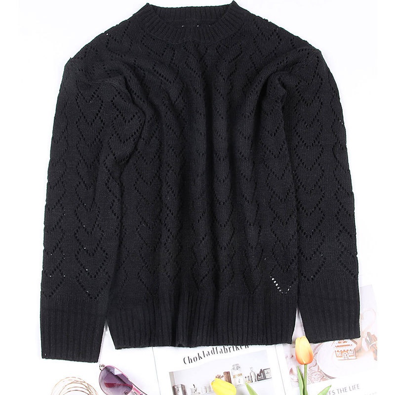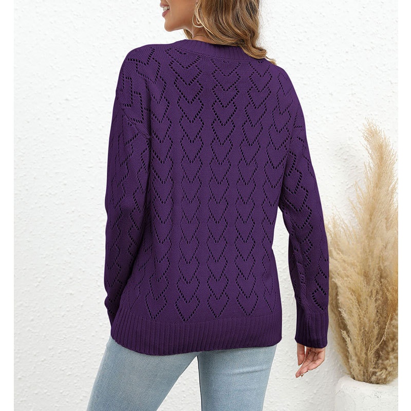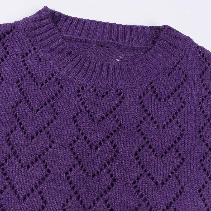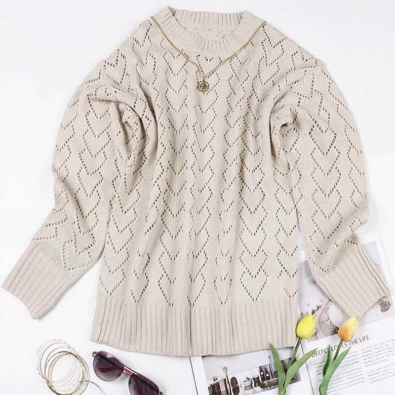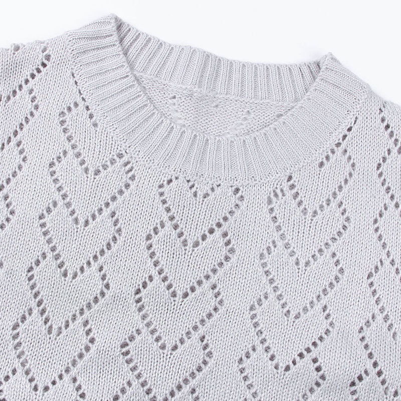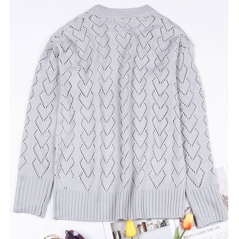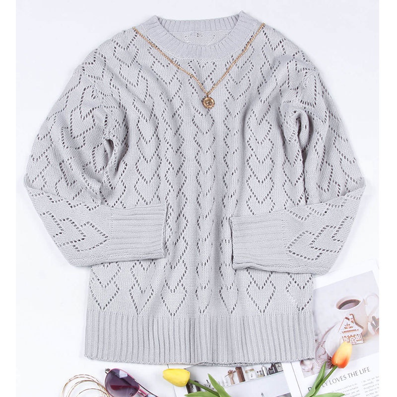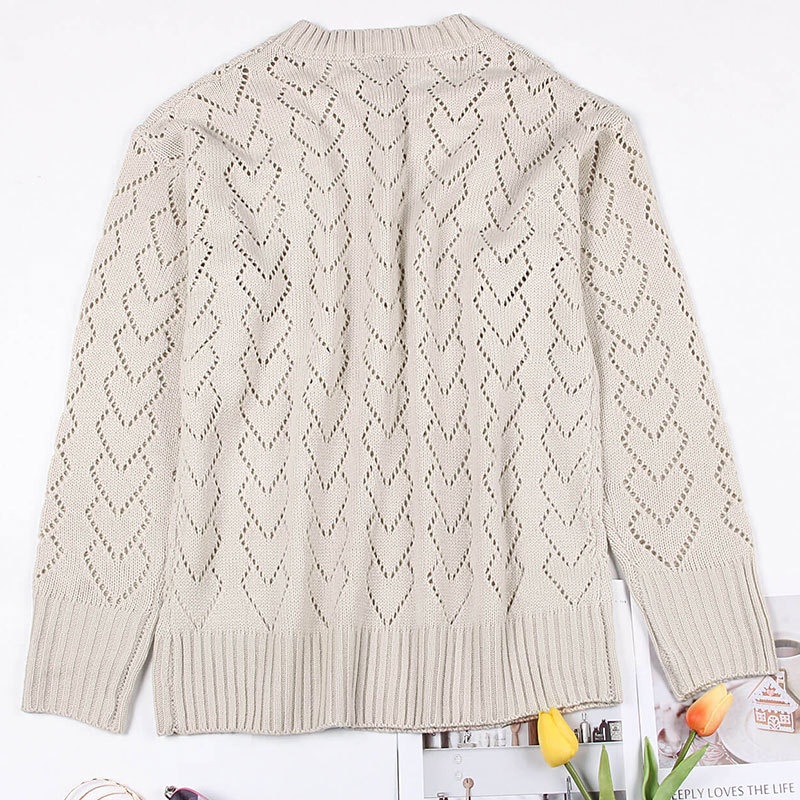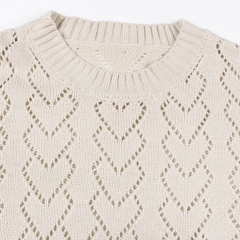 秋冬新款圆领爱心针织衫欧美跨境镂空套头长袖毛衣女装上衣