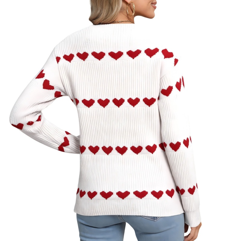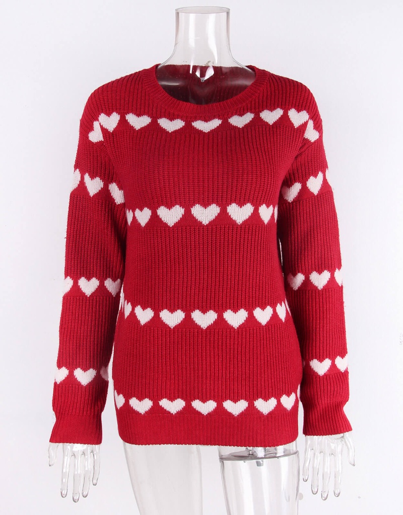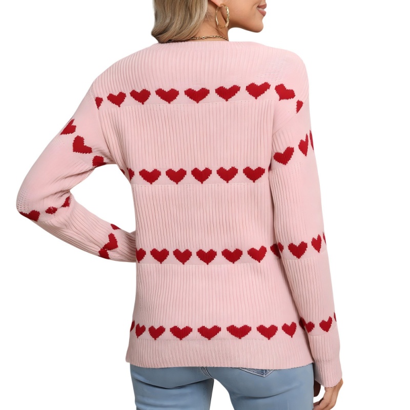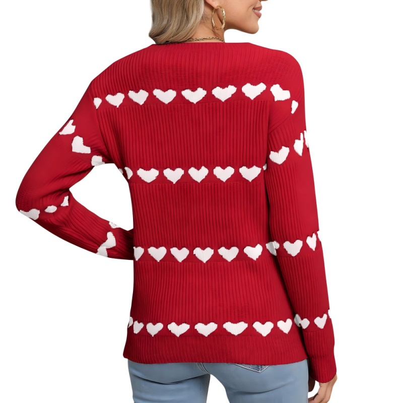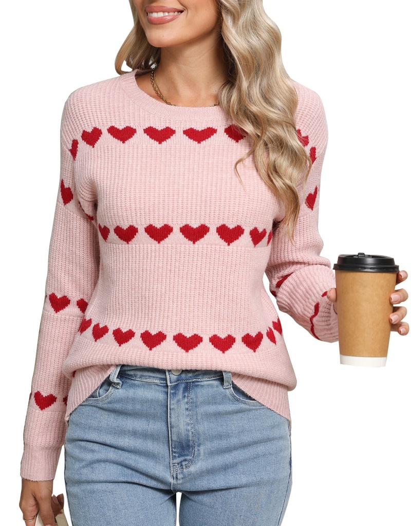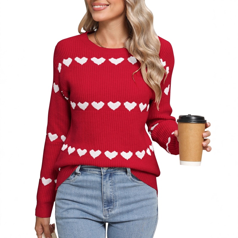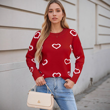 2025新款欧美跨境毛衣女秋冬热卖情人节爱心圆领套头针织衫上衣女
