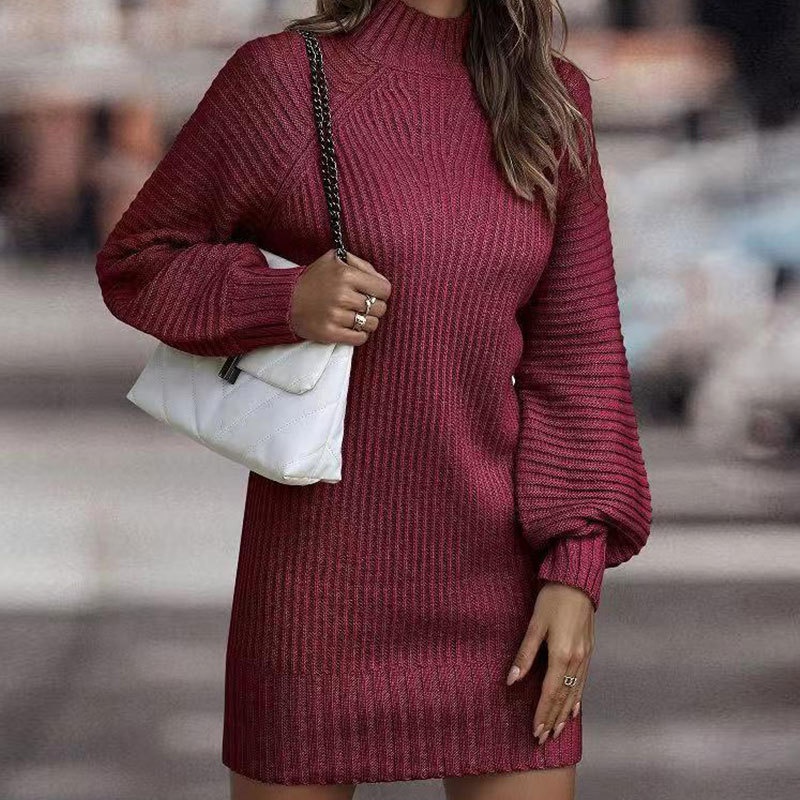 秋冬新款毛衣裙欧美外贸高领毛衣女长袖针织衫连衣裙厂家女