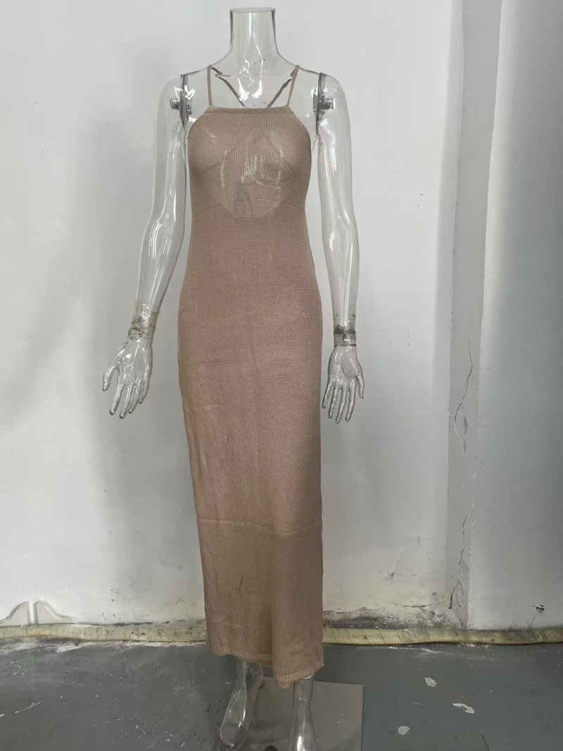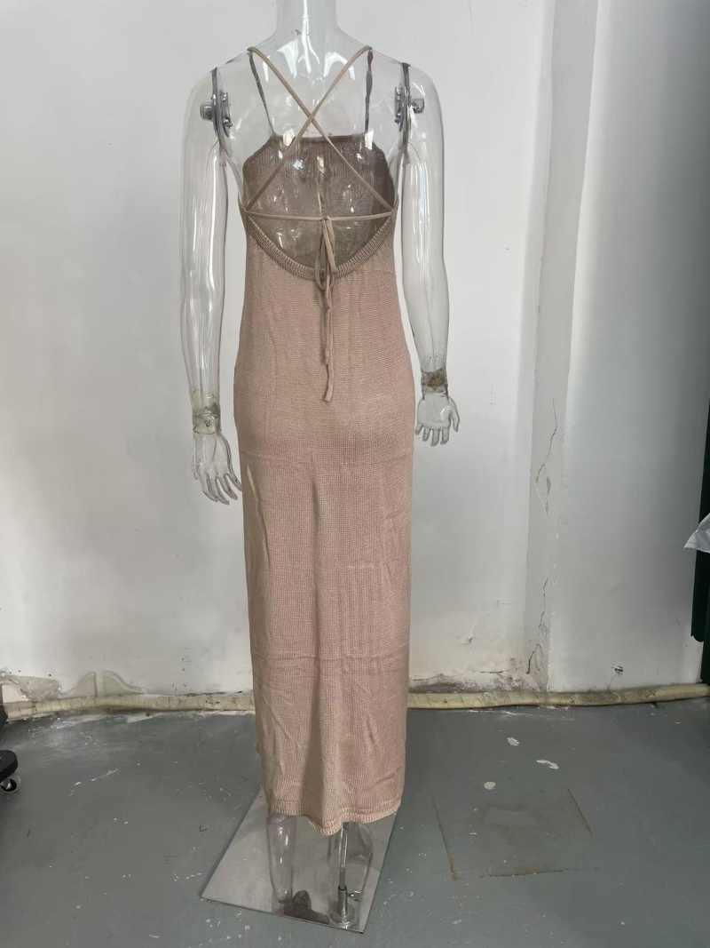 跨境沙滩裙 欧美双侧高开叉吊带美背针织连衣裙沙滩罩衫女