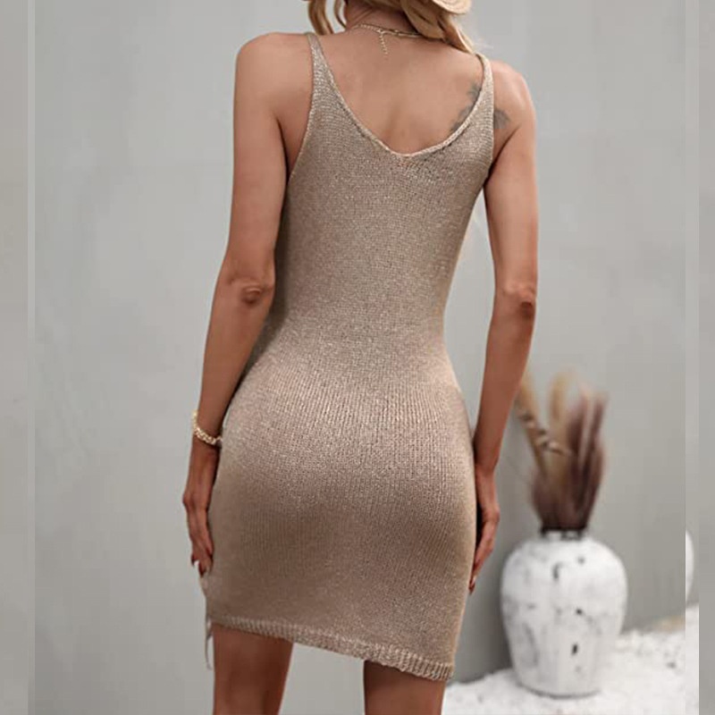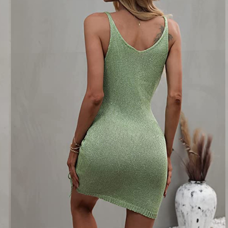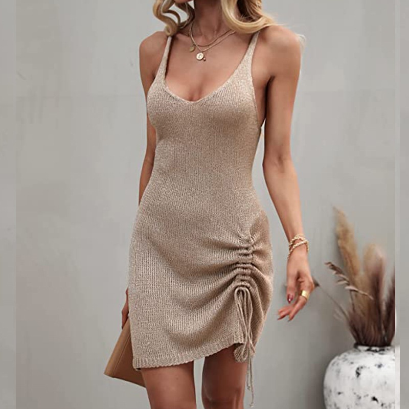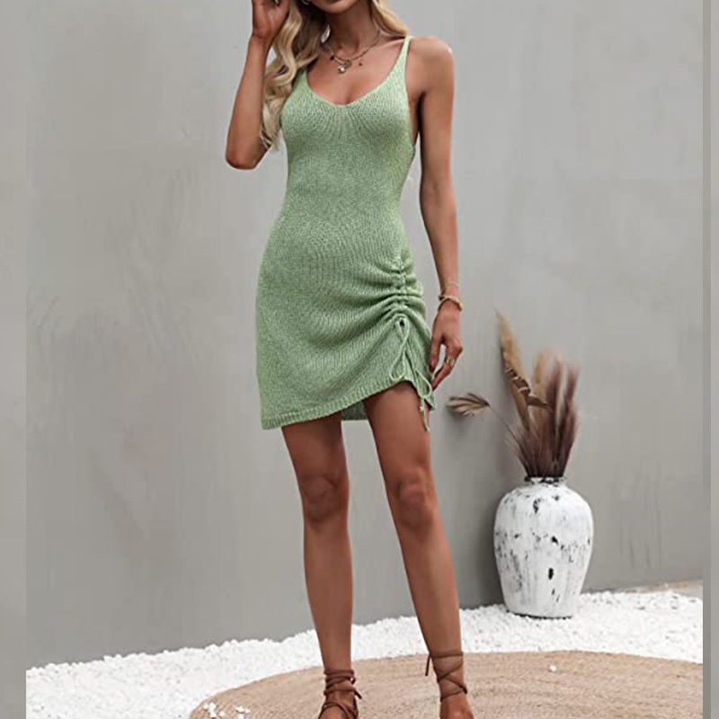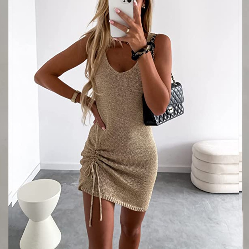 夏季新款吊带型纯色性感女装背心短裙下摆抽绳简约连衣裙女