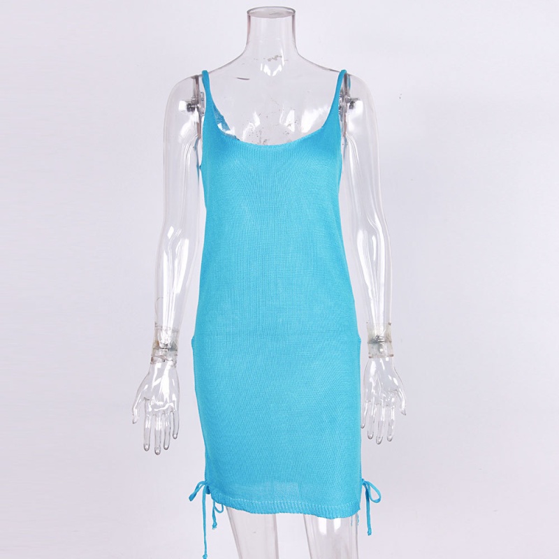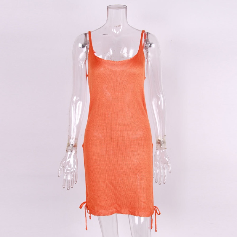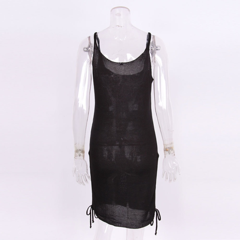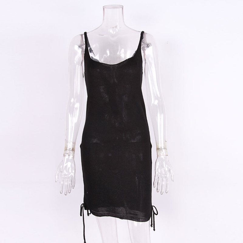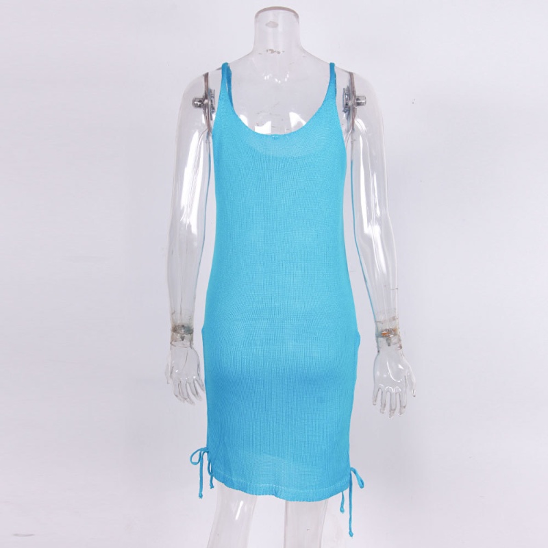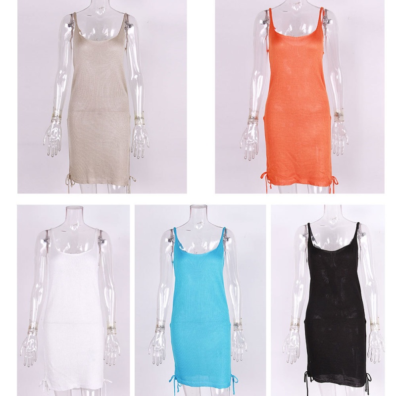 新款 纯色性感女装背心短裙时尚下摆抽绳简约欧美连衣裙