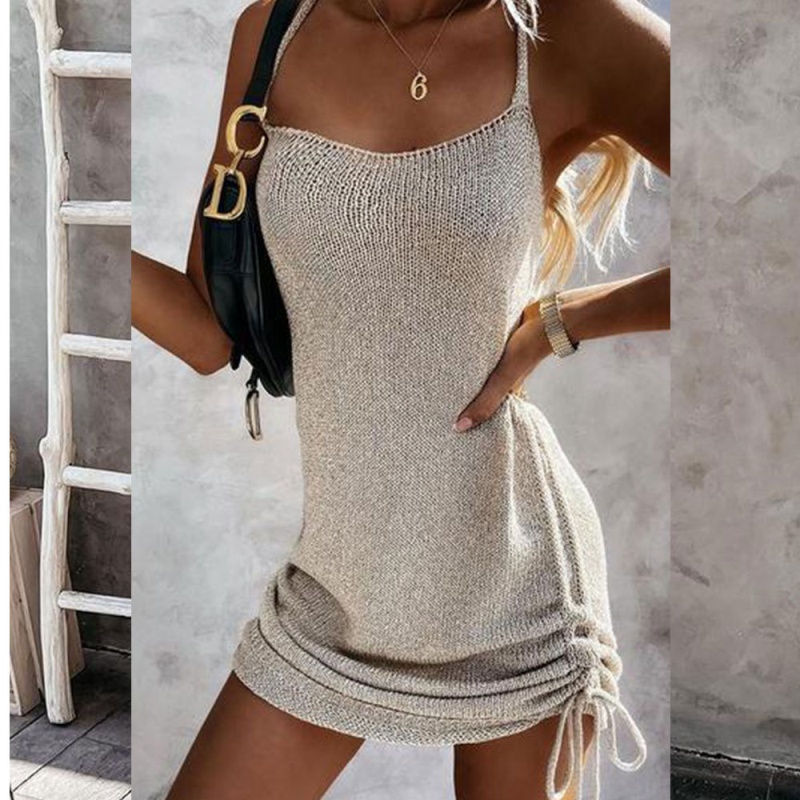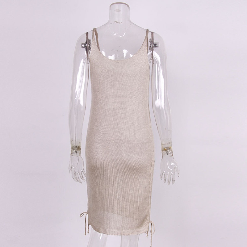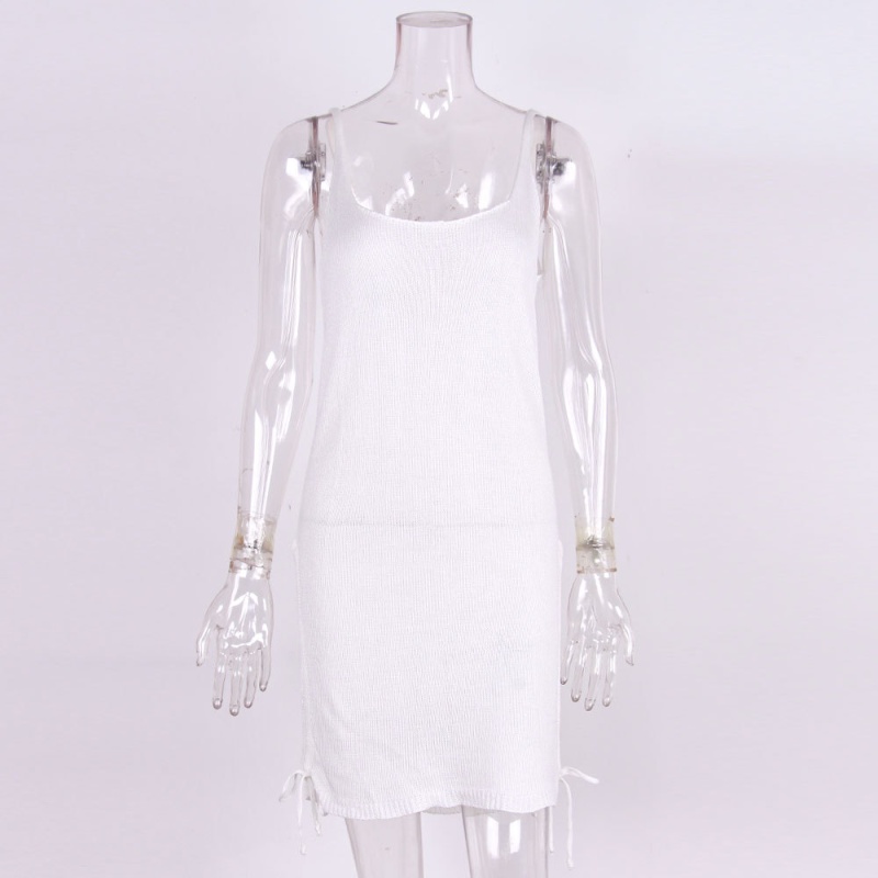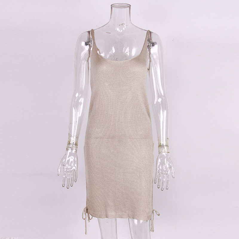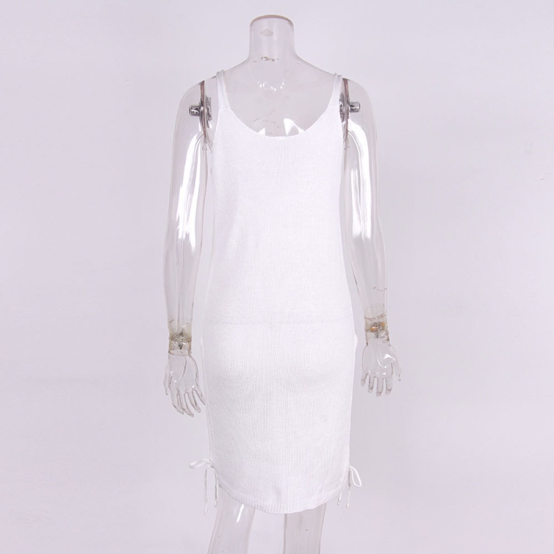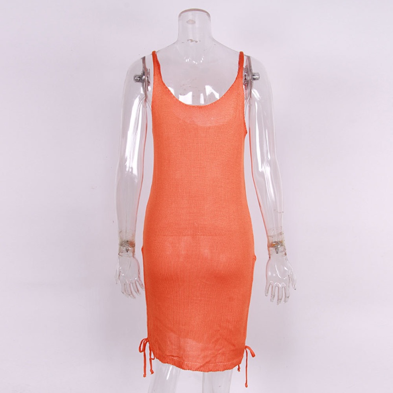 新款 纯色性感女装背心短裙时尚下摆抽绳简约欧美连衣裙