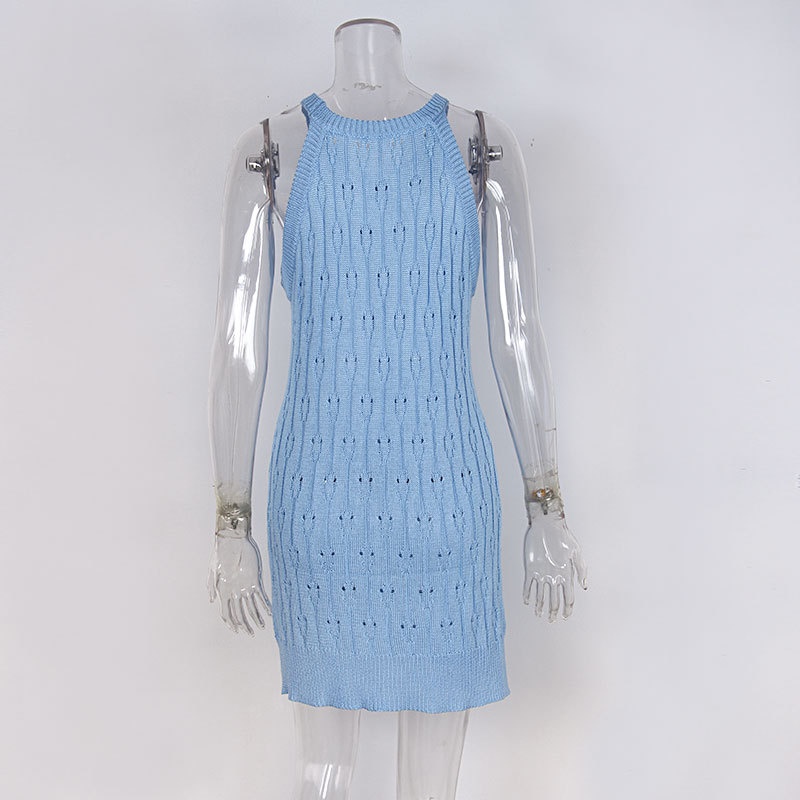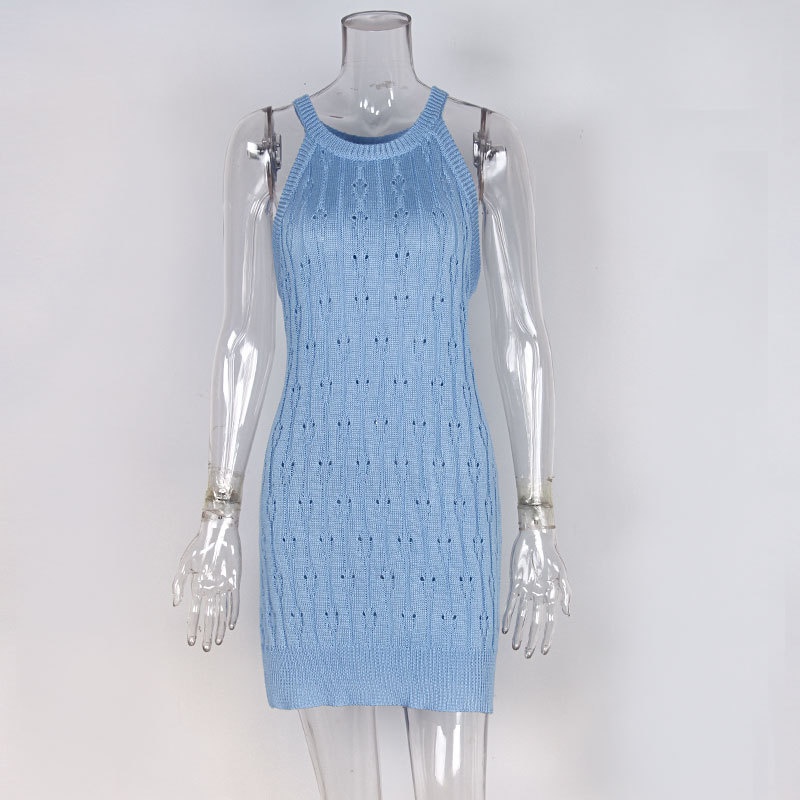 跨境新款欧美女针织吊带裙绝美挂脖性感连衣裙包臀背心短裙