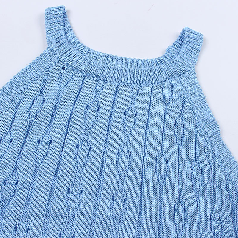 夏季短款纯色法式针织薄款挂脖吊带性感辣妹外穿露背加工定制上衣