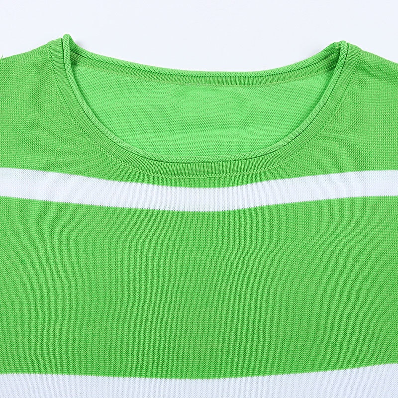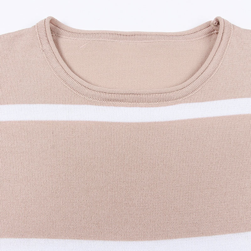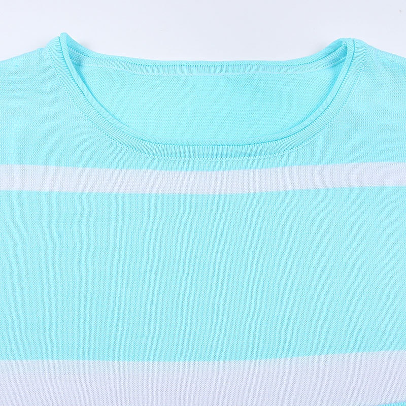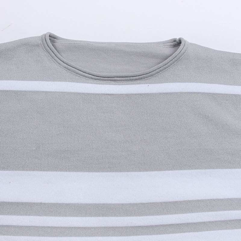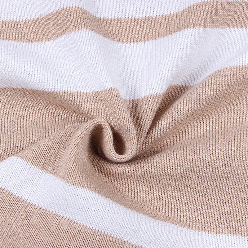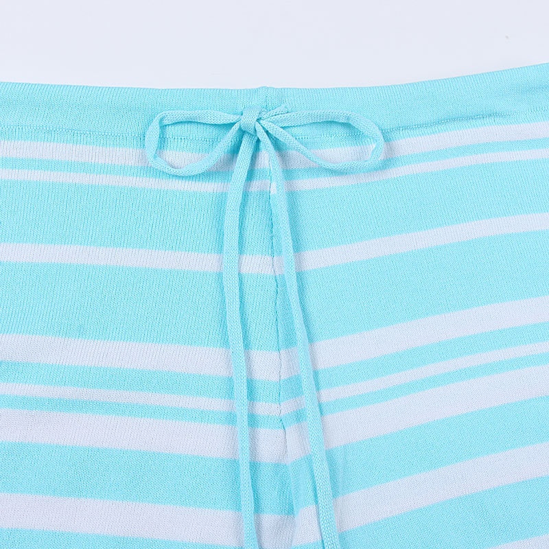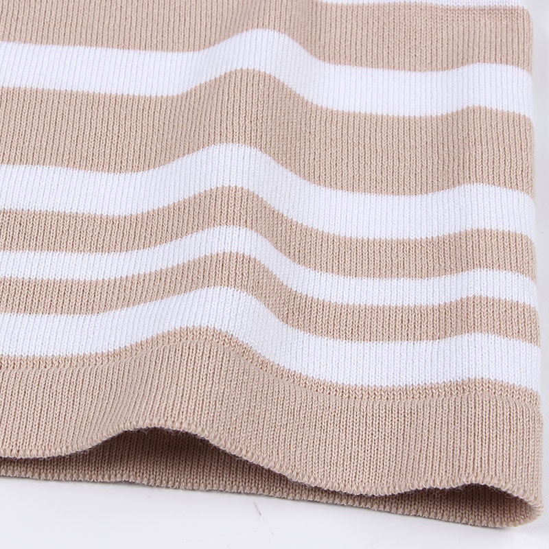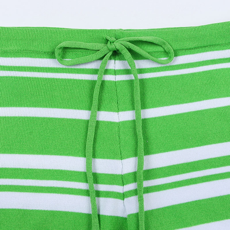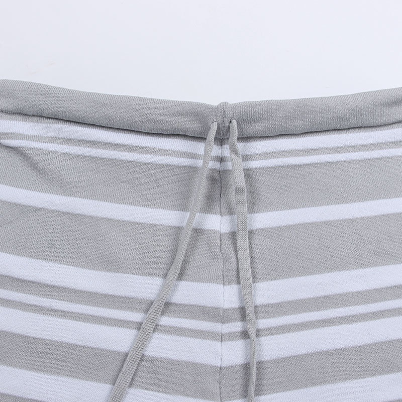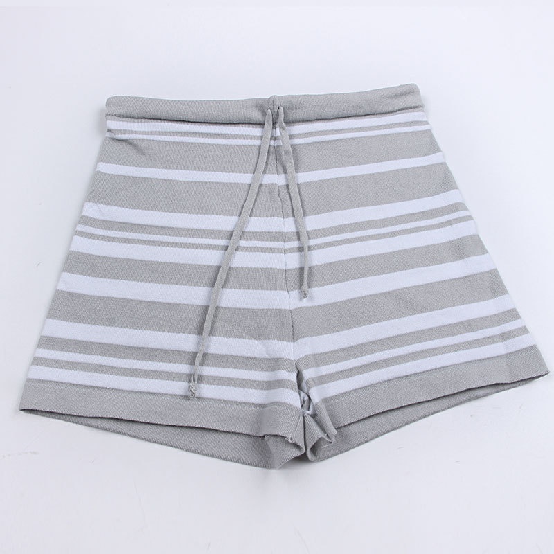 外贸休闲条纹长袖短裤两件套针织阔腿运动时尚套装夏装新款