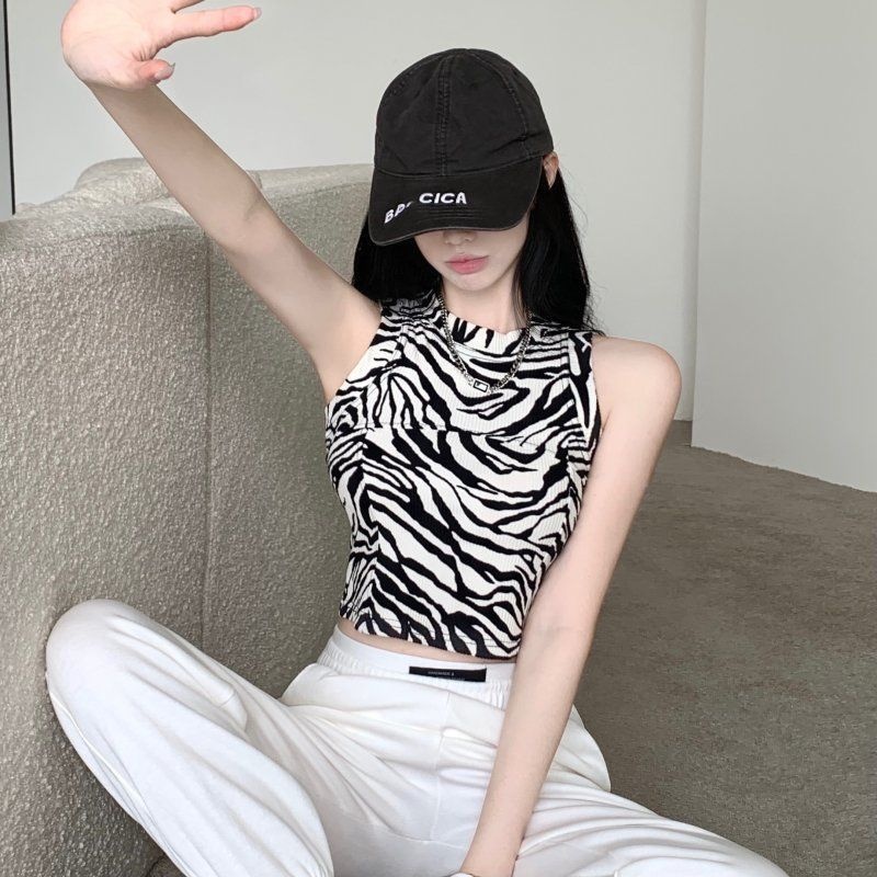 斑马纹针织无袖上衣女夏季内搭修身性感设计感小众无袖辣妹背心潮
