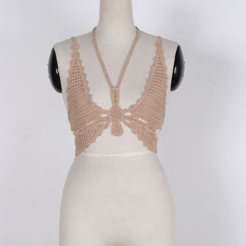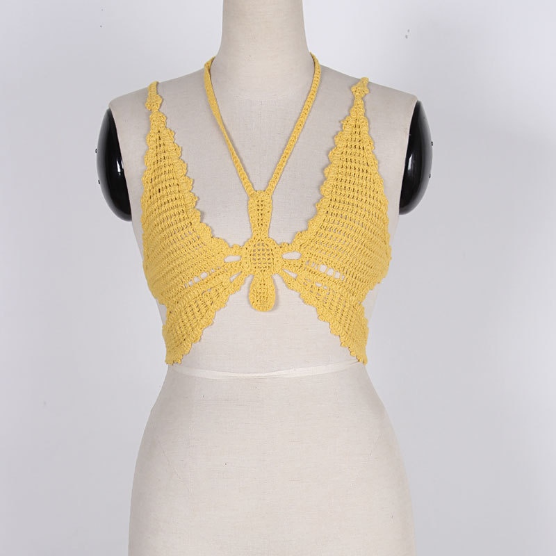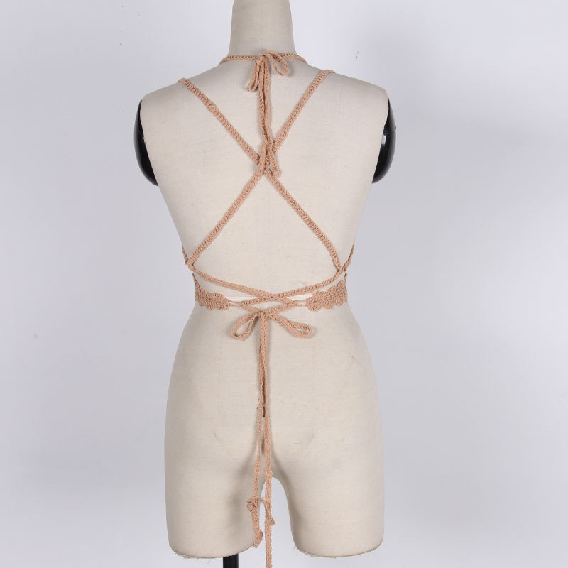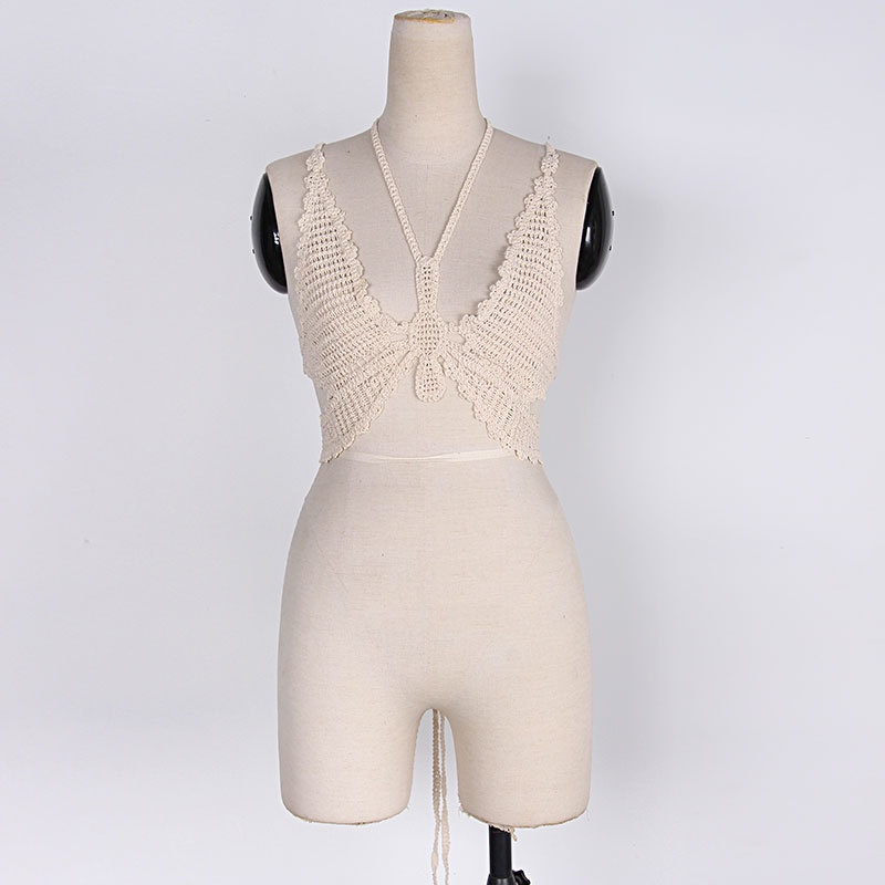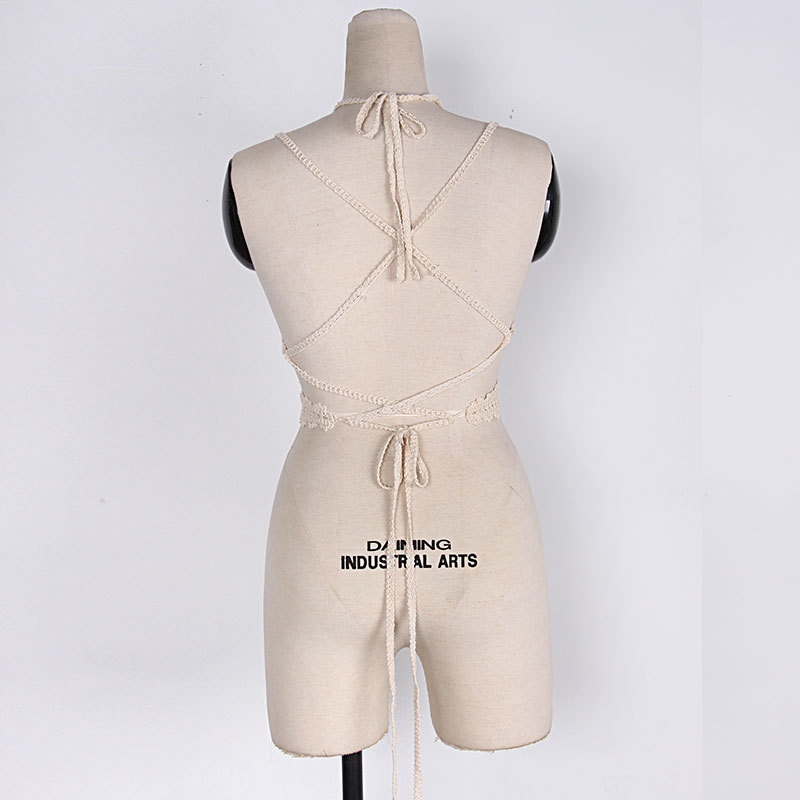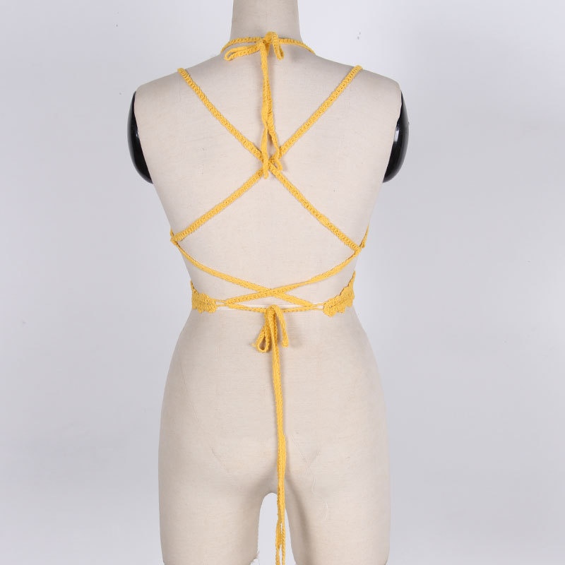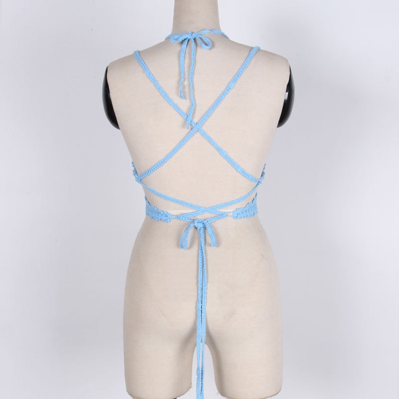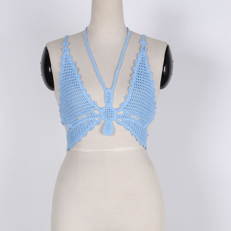 夏季短款纯色法式针织薄款挂脖吊带性感辣妹外穿露背加工定制上衣