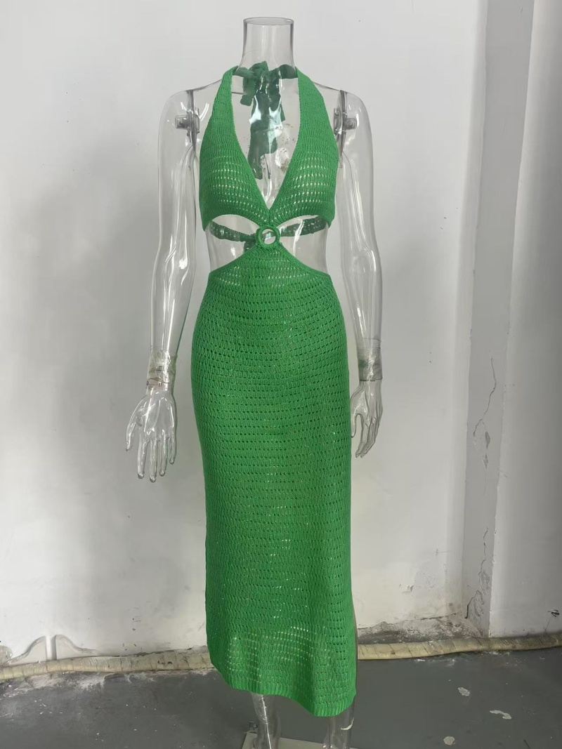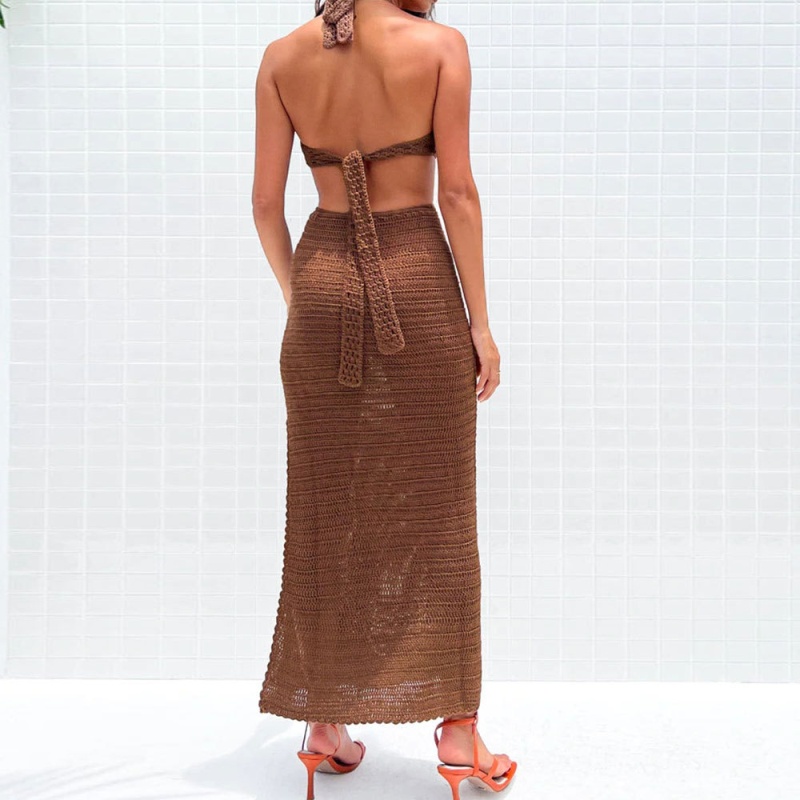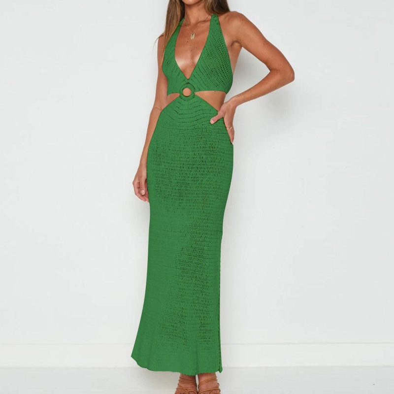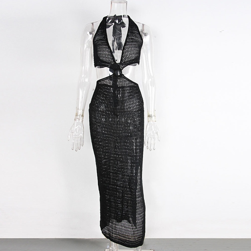 欧美新款比基尼泳衣罩衫 跨境V领露腰后背系带沙滩裙外套女