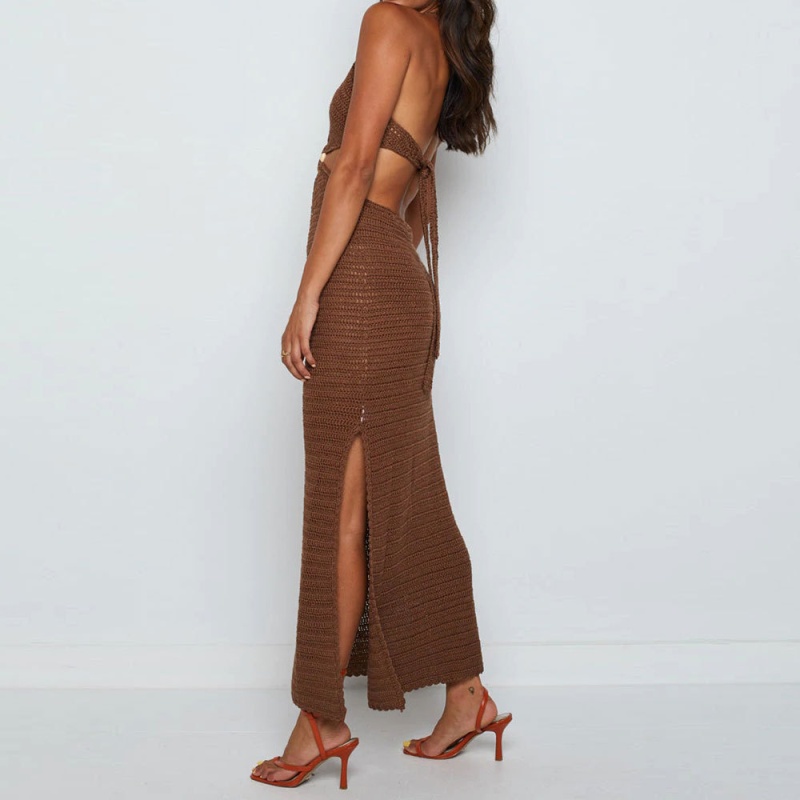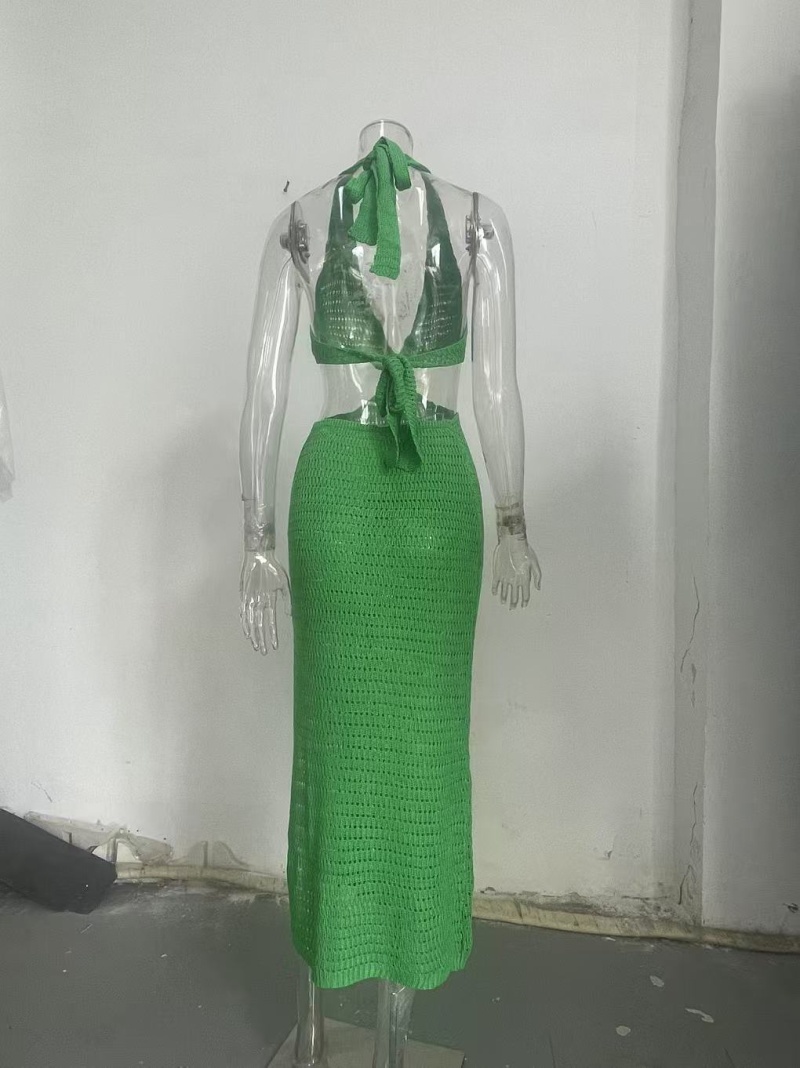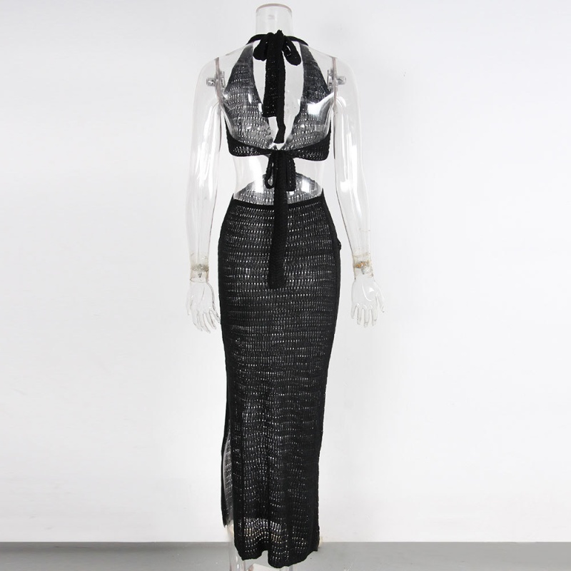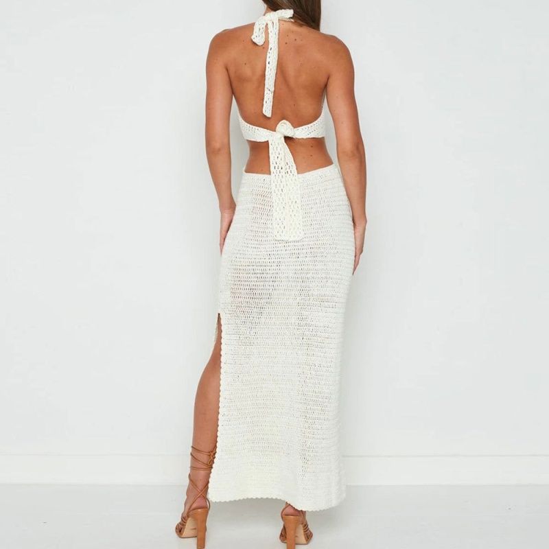 夏季短款纯色法式针织薄款挂脖吊带性感辣妹外穿露背加工定制上衣