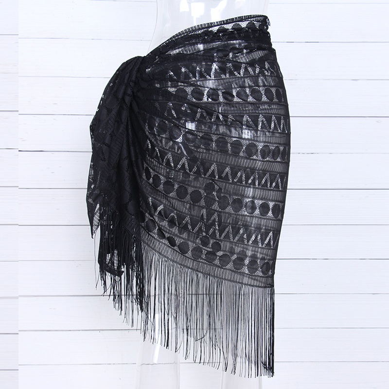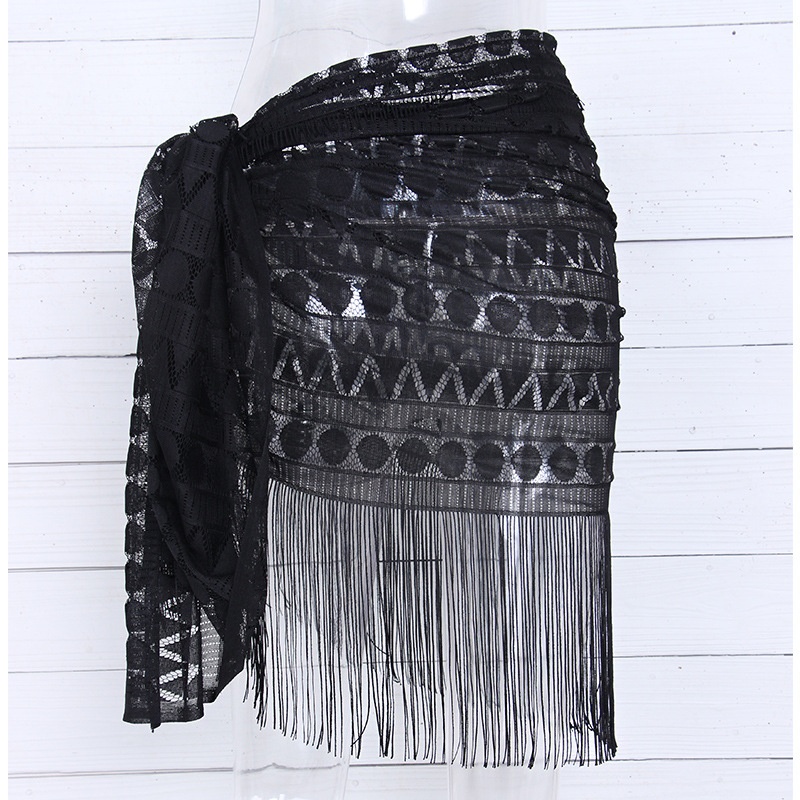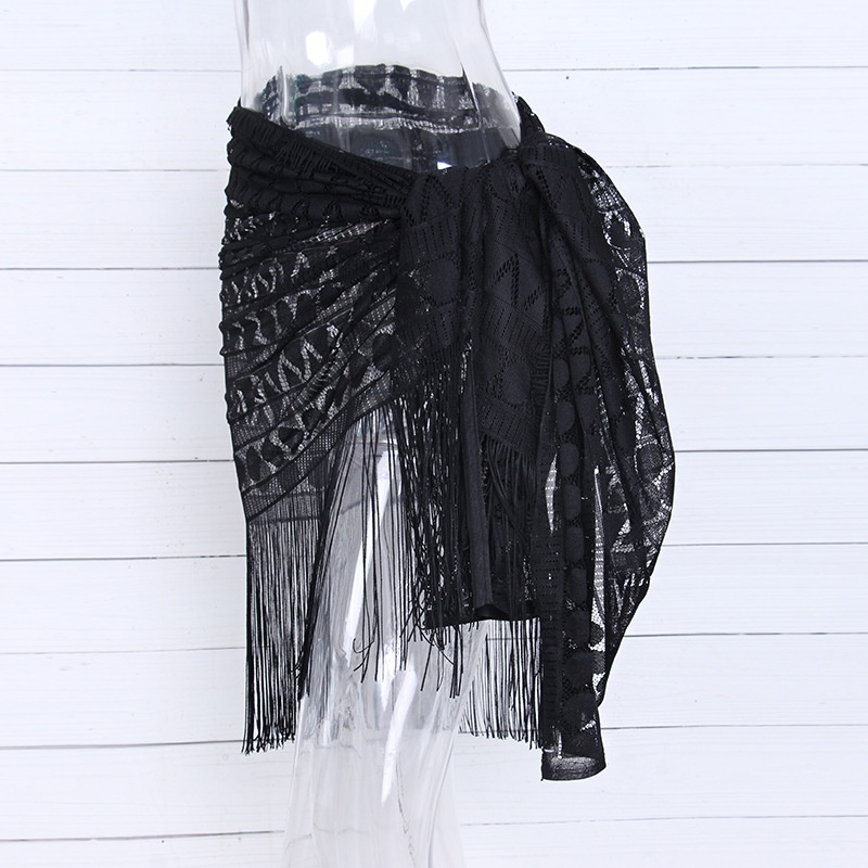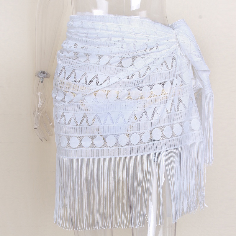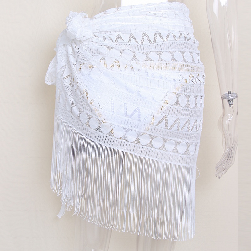 蕾丝流苏半身裙 新款镂空沙滩围裙 比基尼罩衫女