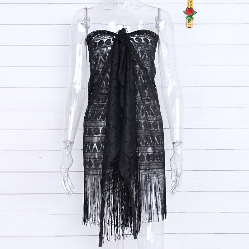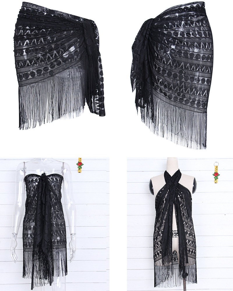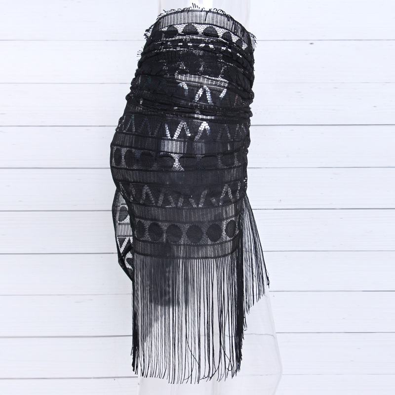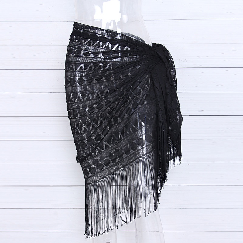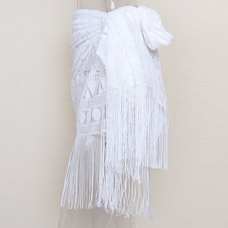 蕾丝流苏半身裙 新款镂空沙滩围裙 比基尼罩衫女