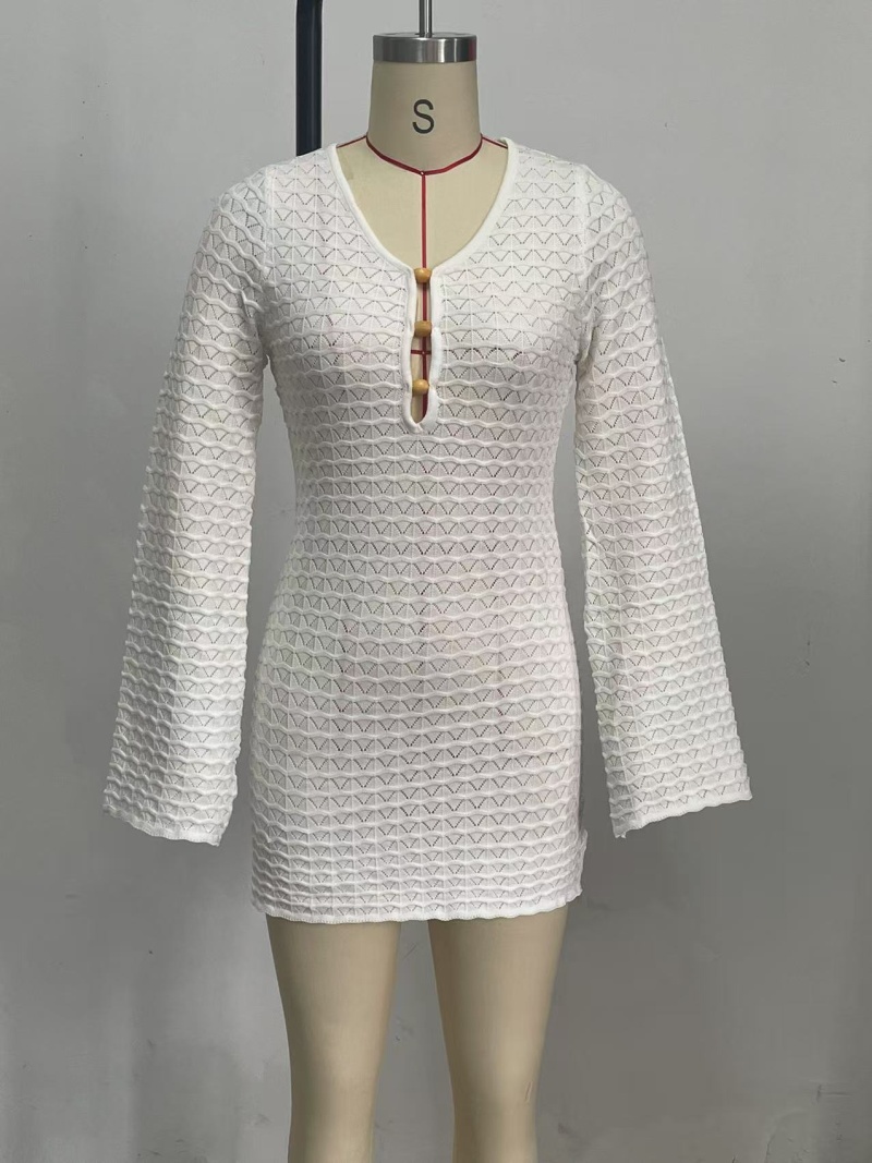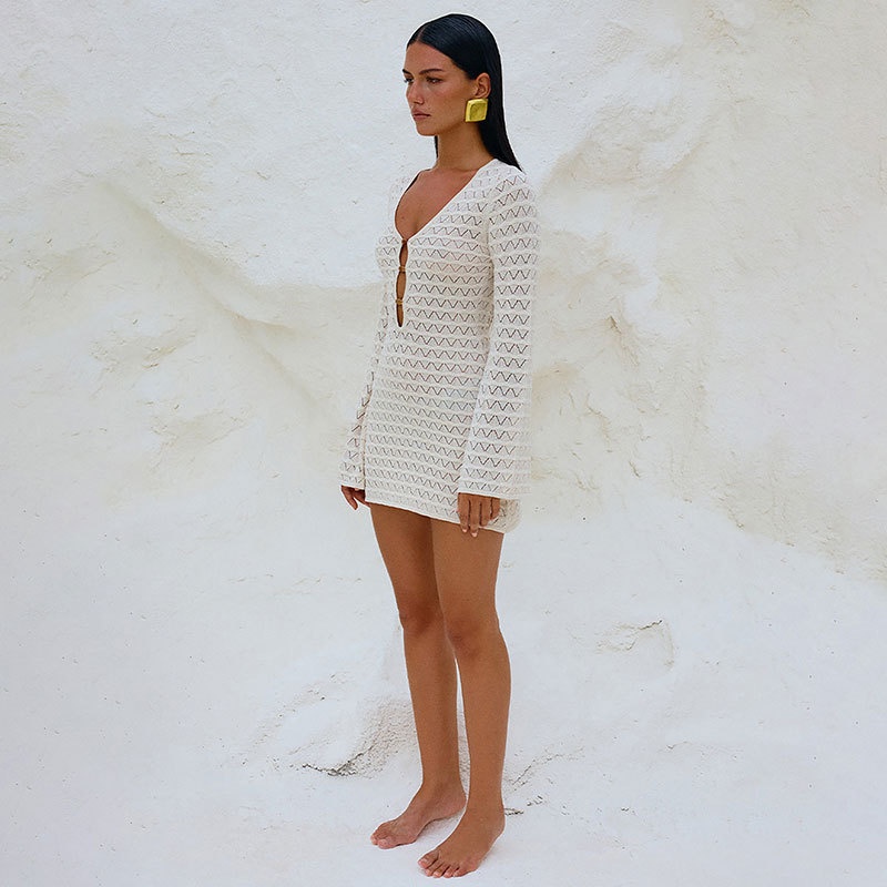 洋洋新款跨境欧美沙滩裙女纯色性感针织沙滩比基尼泳衣女装连衣裙