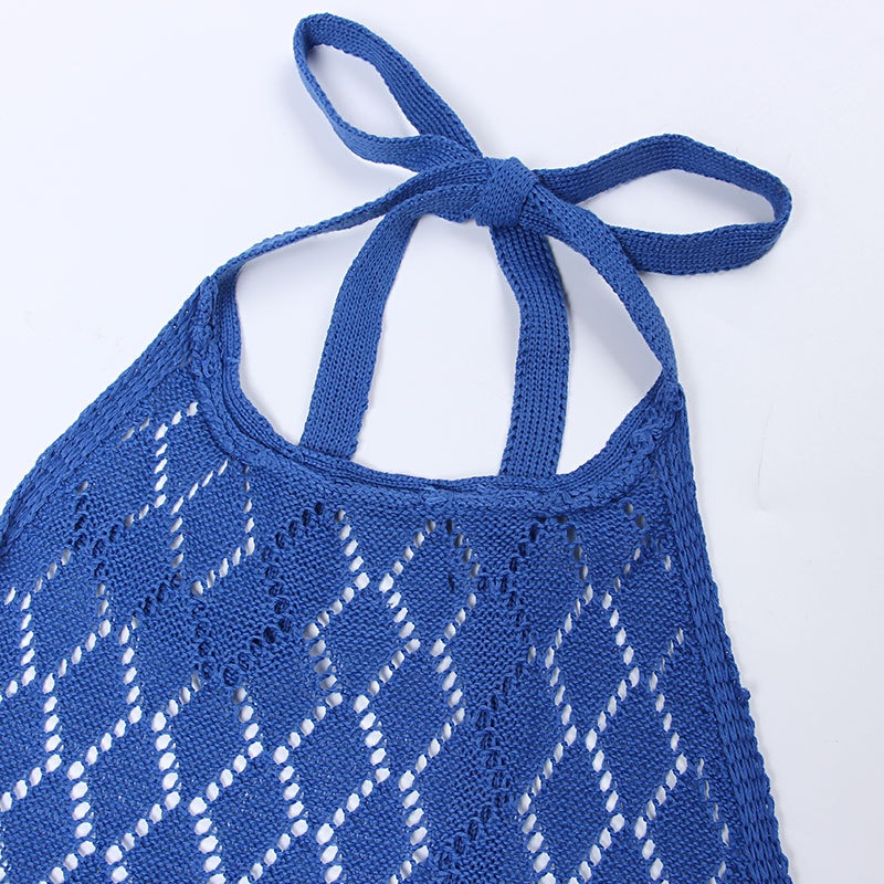 夏季短款纯色法式针织薄款挂脖吊带性感辣妹外穿露背加工定制上衣