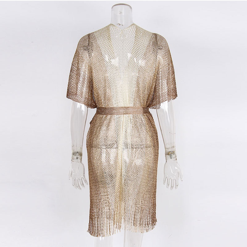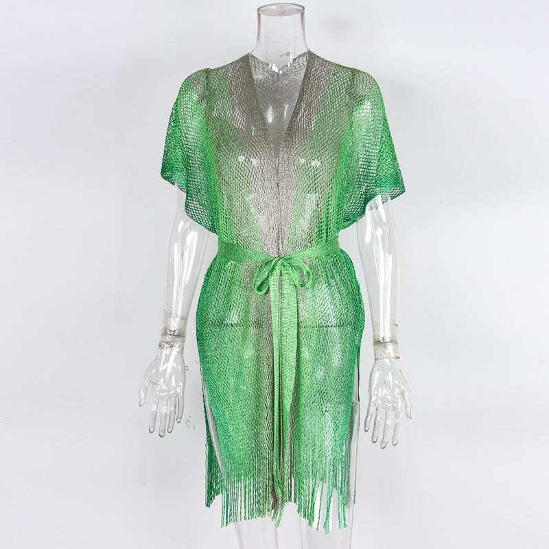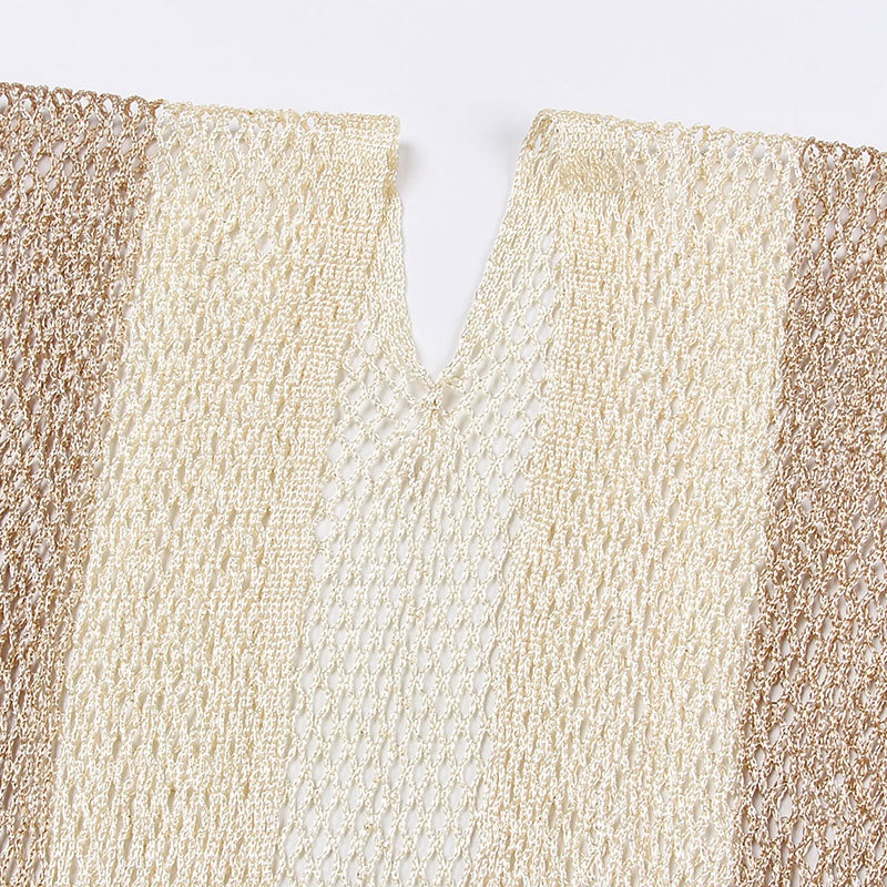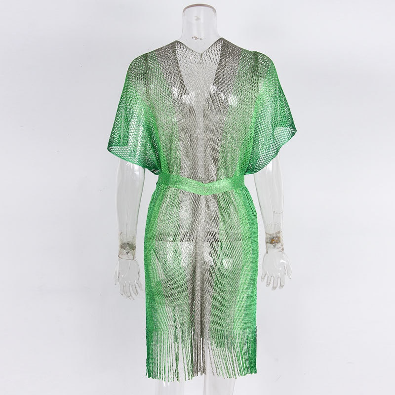 新款女防晒衣跨境欧美拼色有腰带开叉披肩度假沙滩泳衣罩衫