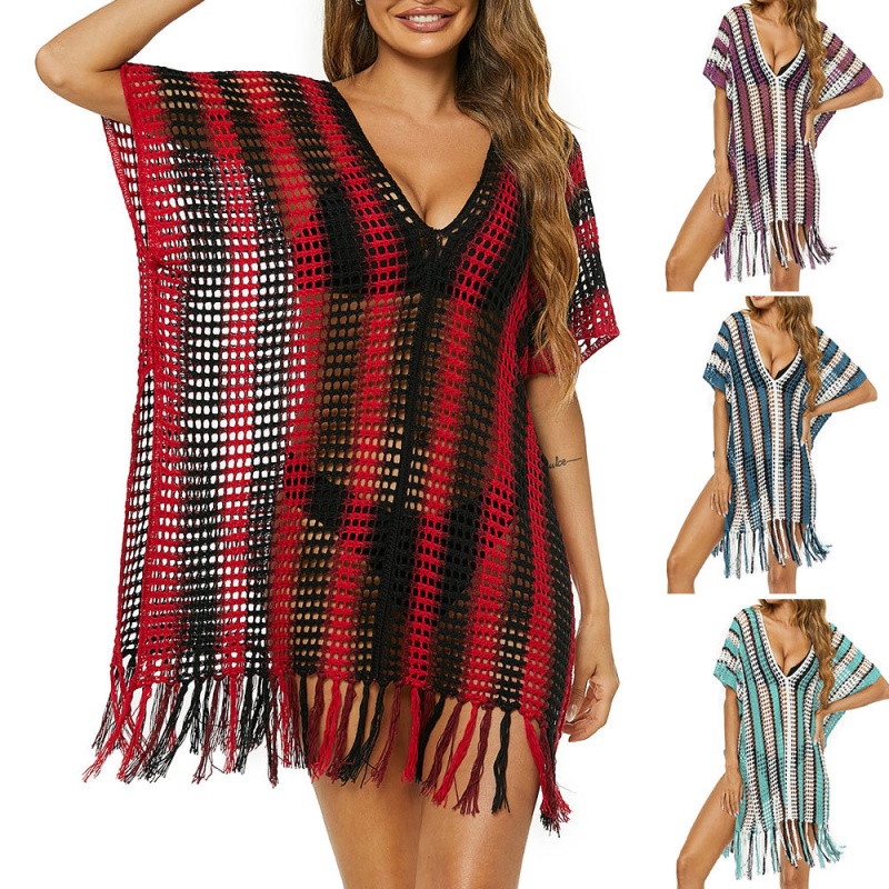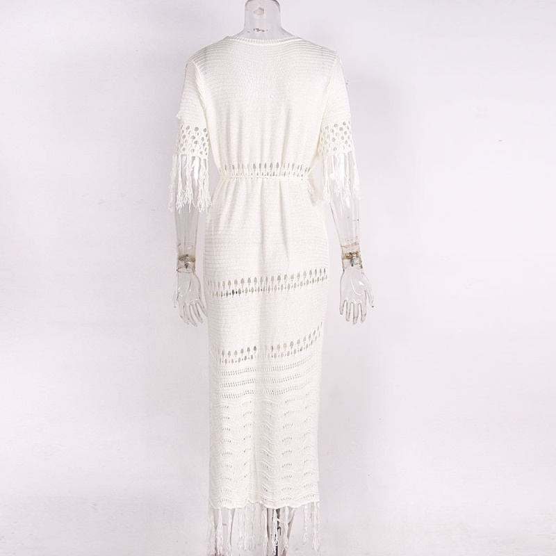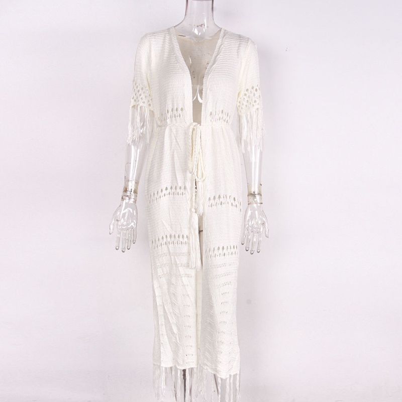 春夏新款 纯色针织开衫跨境比基尼罩衫裙腰带长款沙滩衣