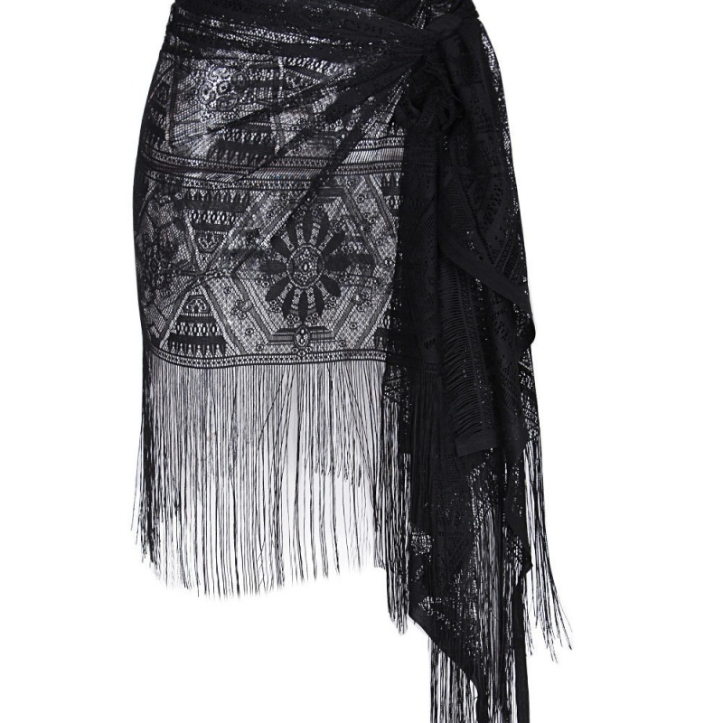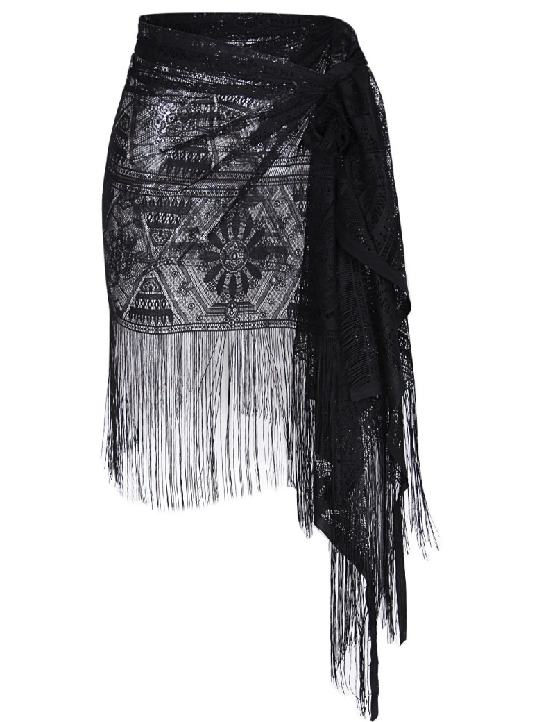 欧美跨境流苏沙滩防晒披肩性感比基尼裹裙太阳花沙滩防晒裙罩衫
