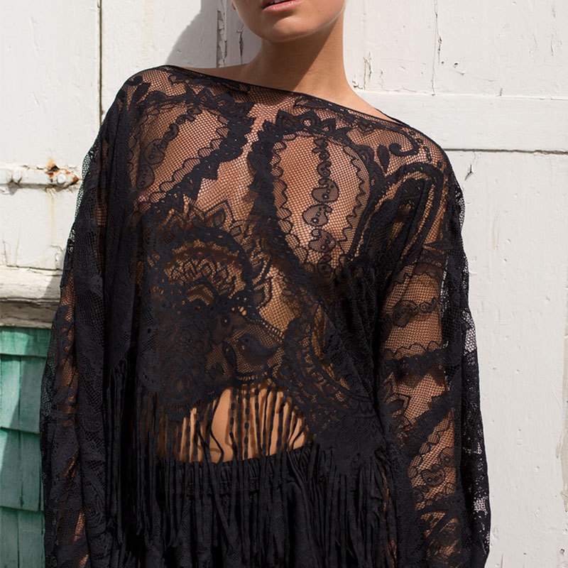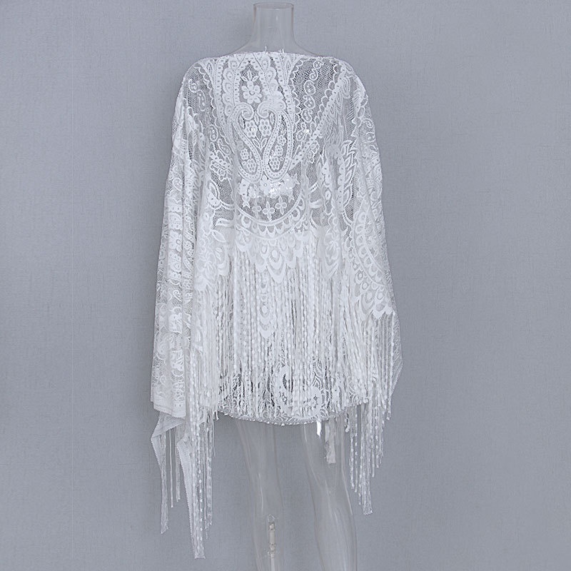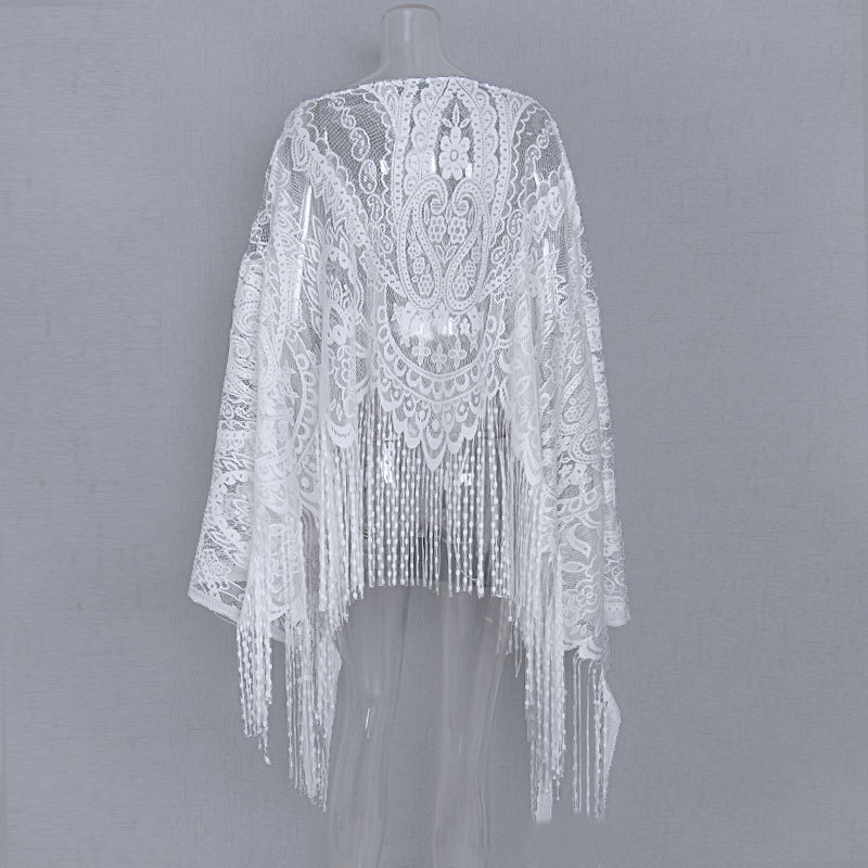 新款跨境欧美eBay沙滩罩衫跨境泳衣蕾丝流苏沙滩防晒套装女