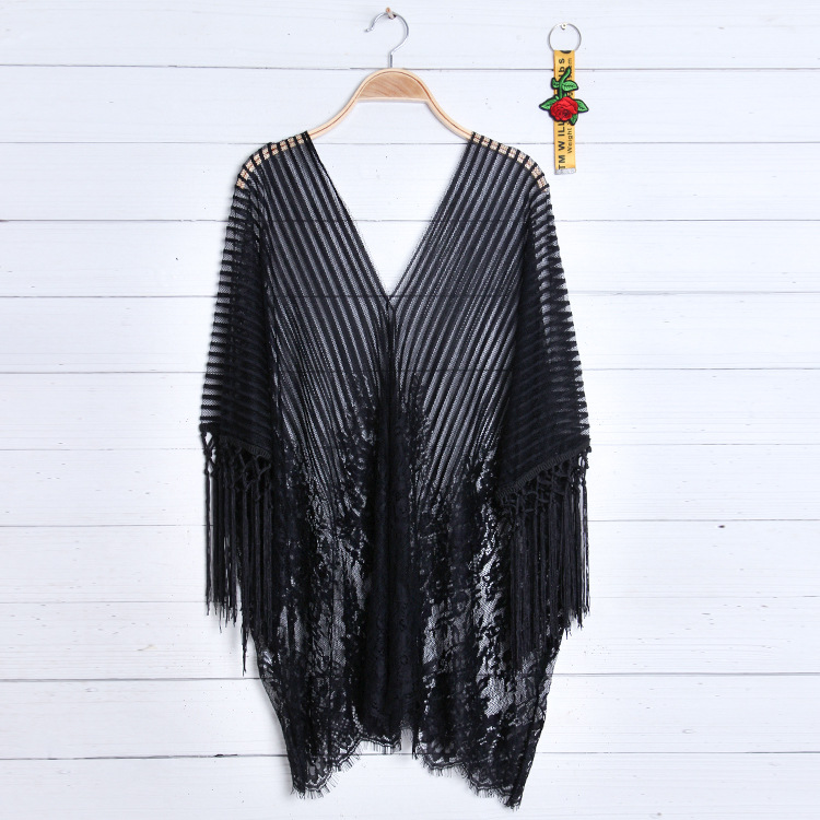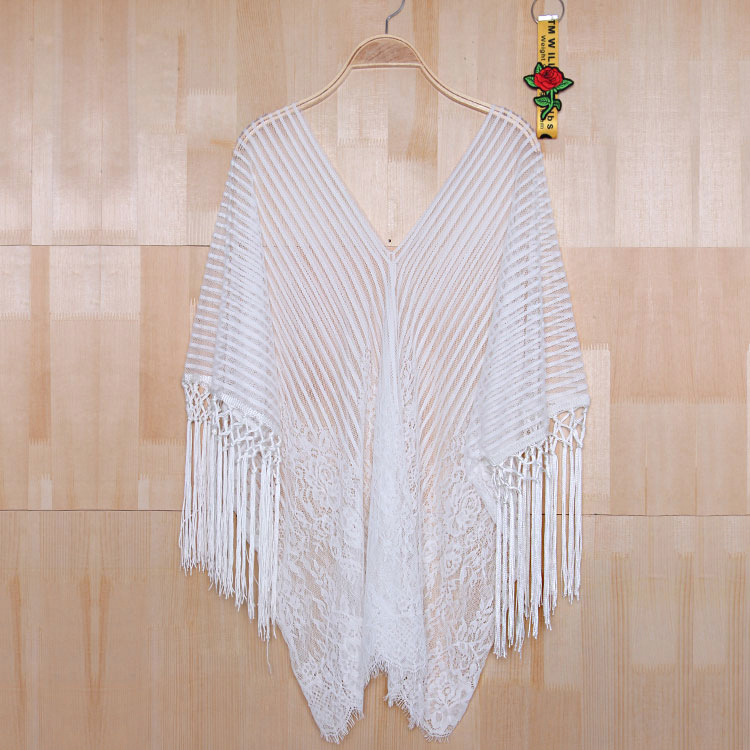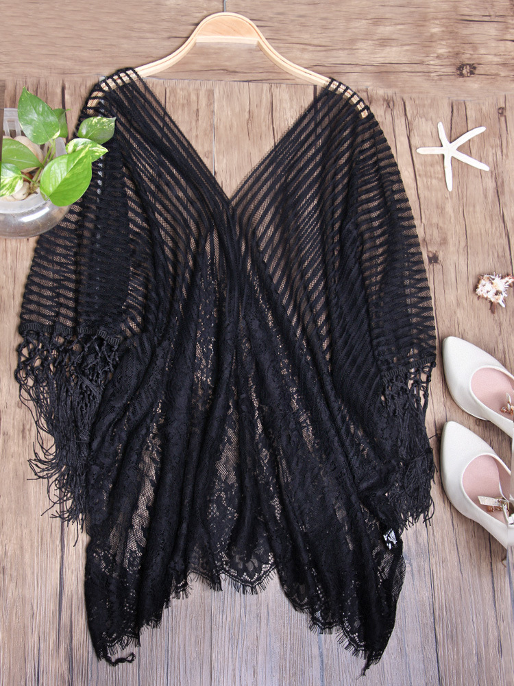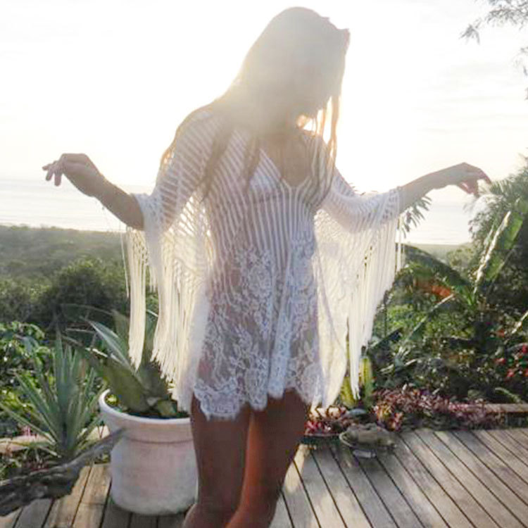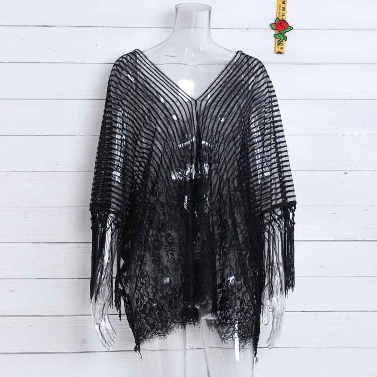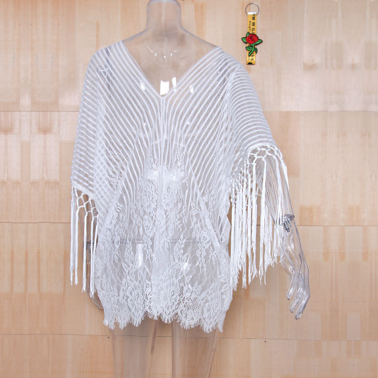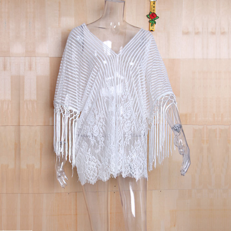 现货欧美比基尼罩衫泳衣女eBay流苏雪纺比基尼沙滩防晒衣