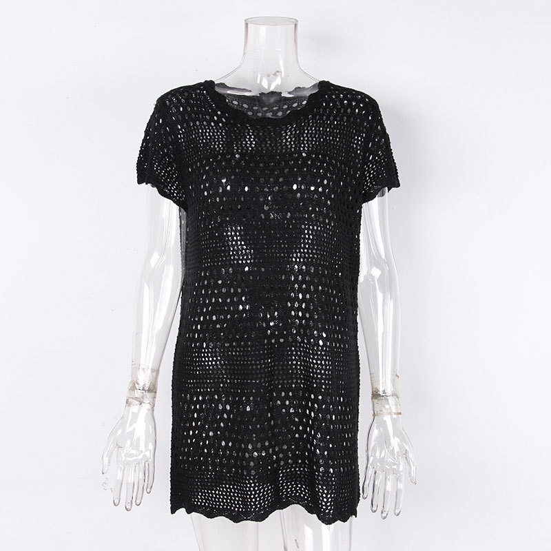 欧美沙滩罩衫 女式钩针缕空罩衫夏季比基尼泳装针织沙滩裙