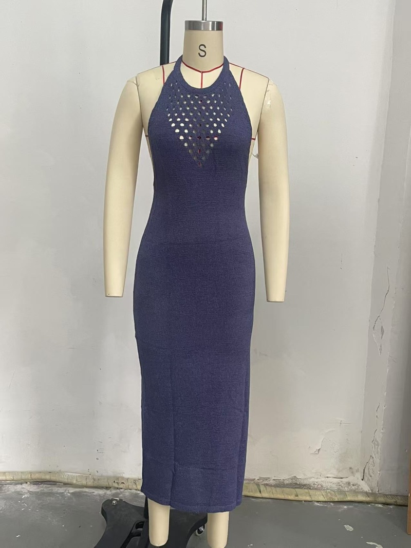 洋洋跨境新款欧美沙滩罩衫镂空针织挂脖比基尼罩衫防晒裙女