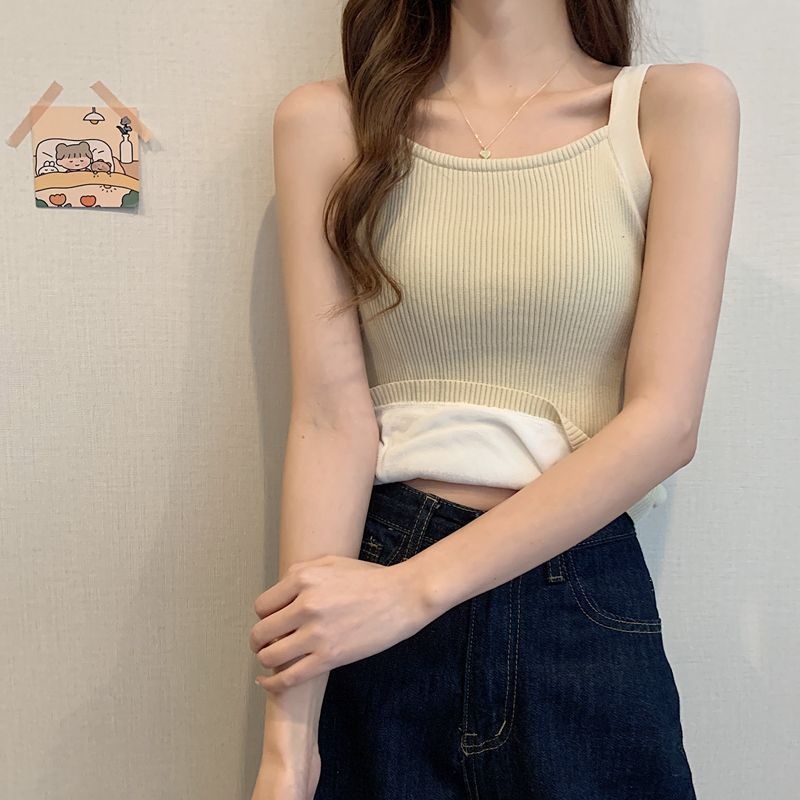 针织吊带小背心女秋冬新款西装内搭加绒加厚内衣打底外穿美背上衣