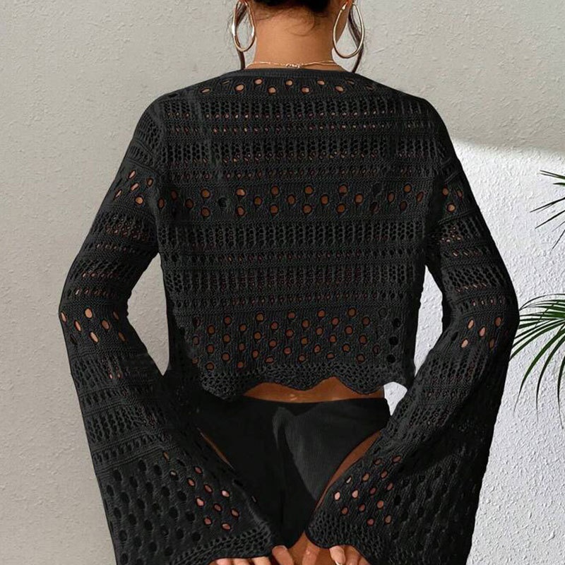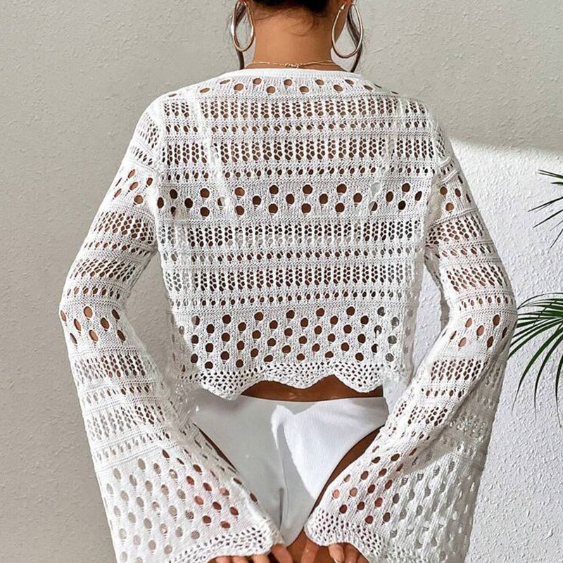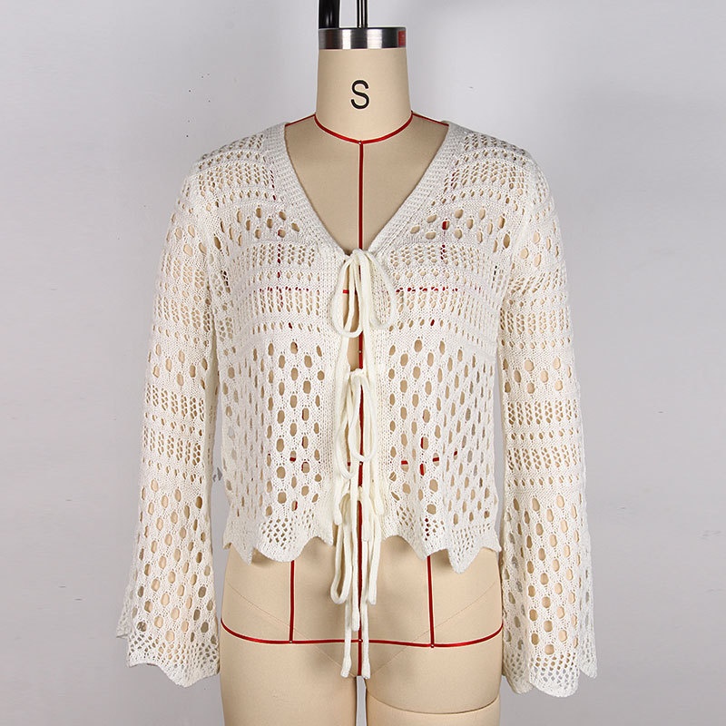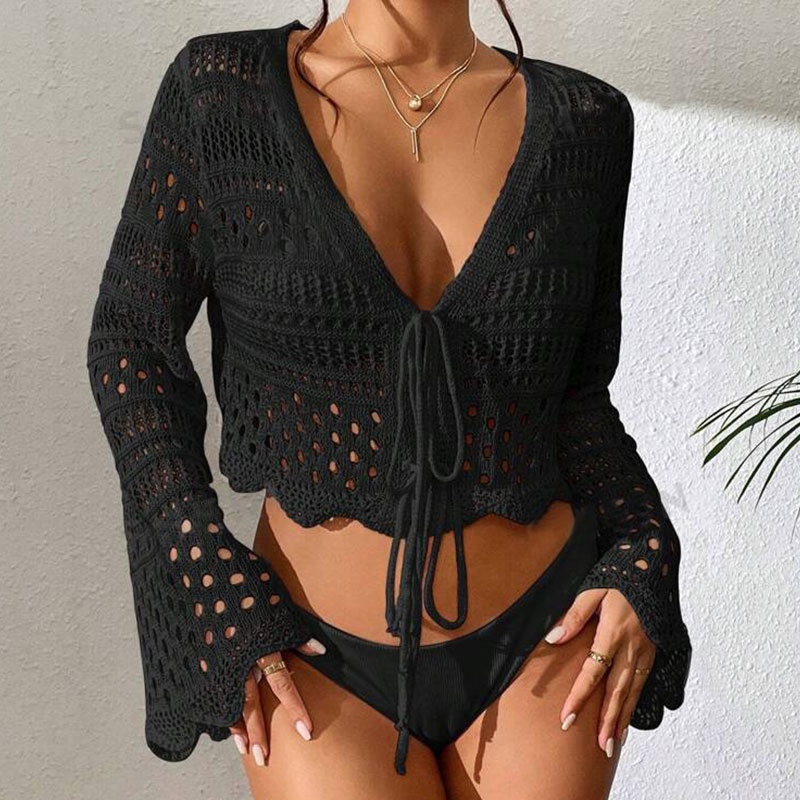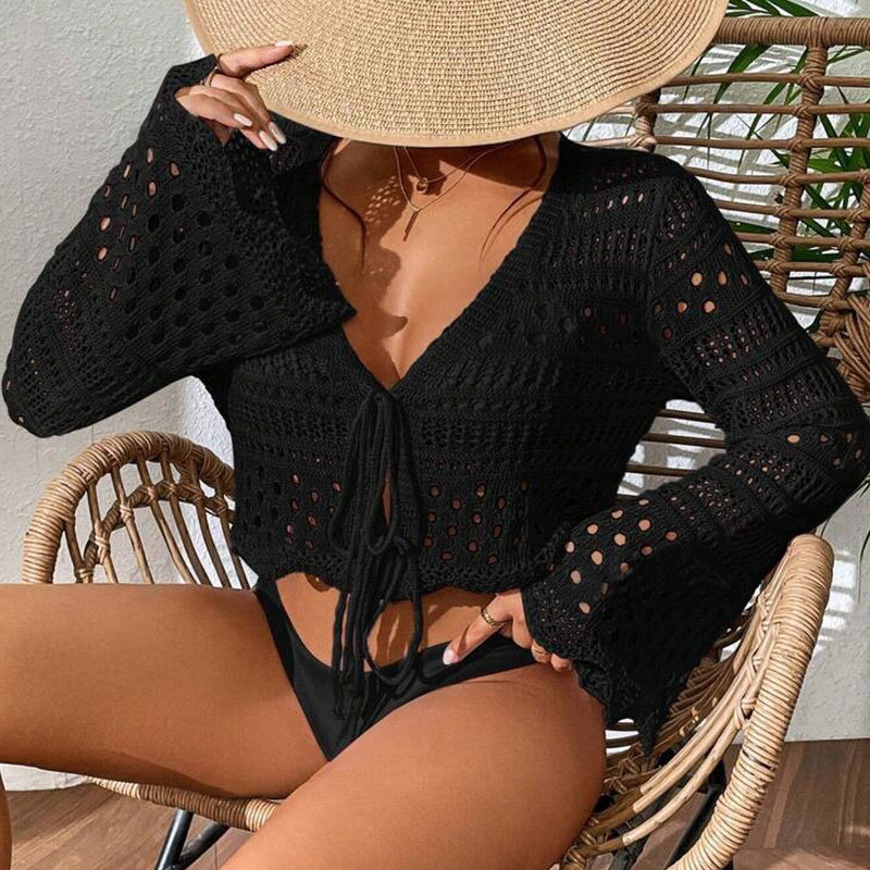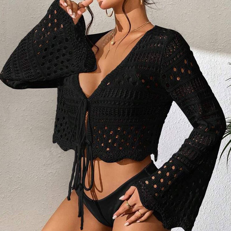 洋洋外贸欧美跨境针织镂空沙滩罩衫绑带开衫比基尼泳衣外搭