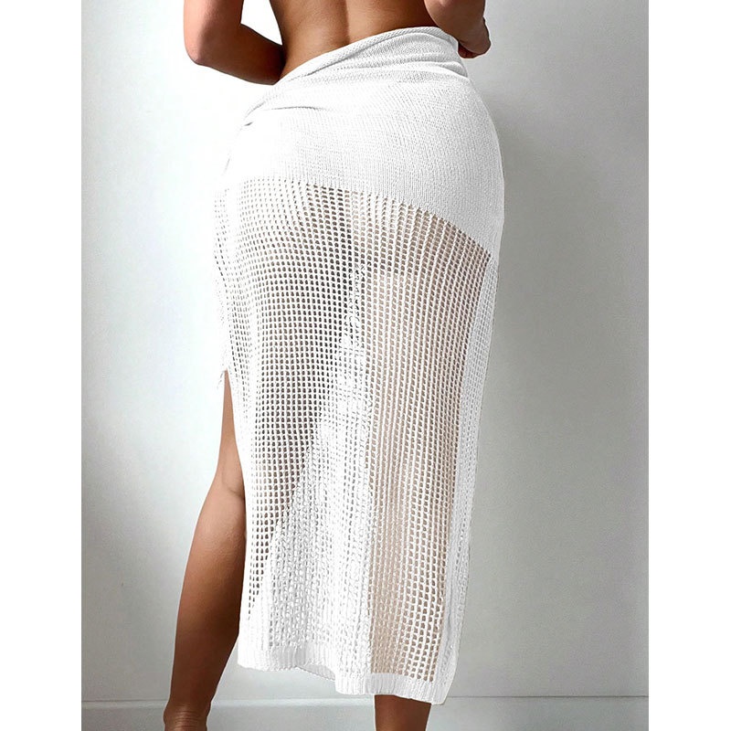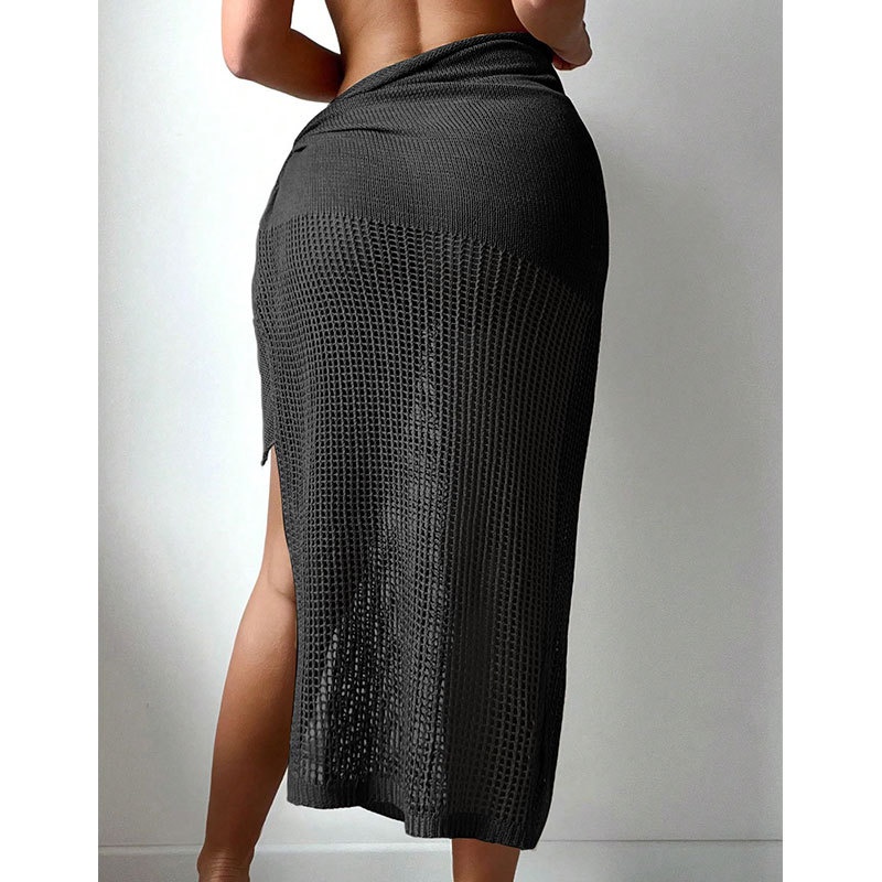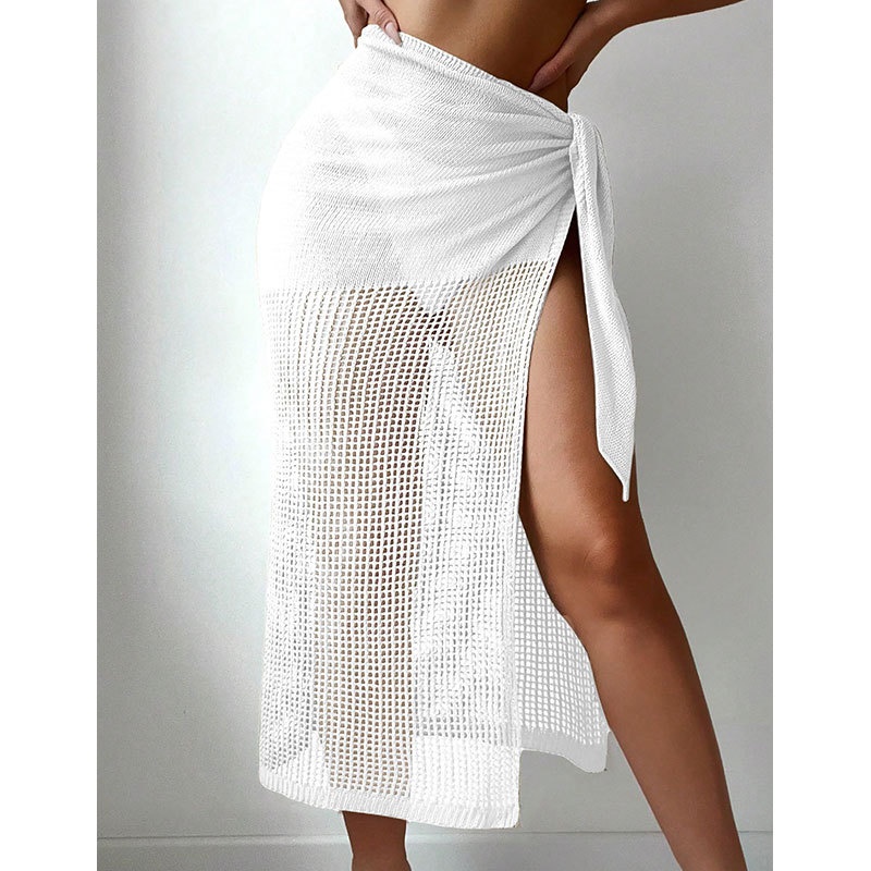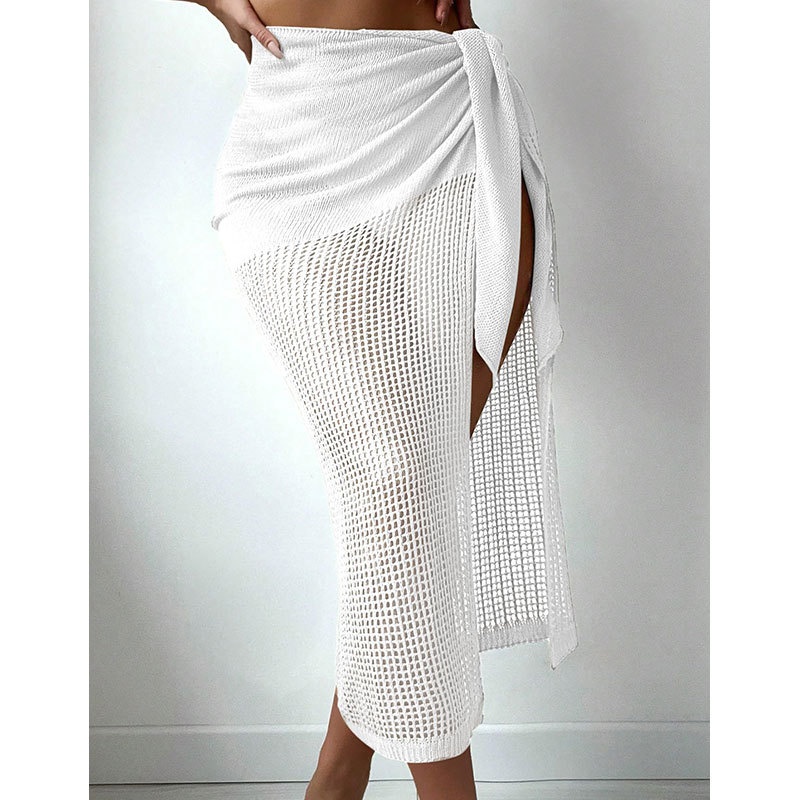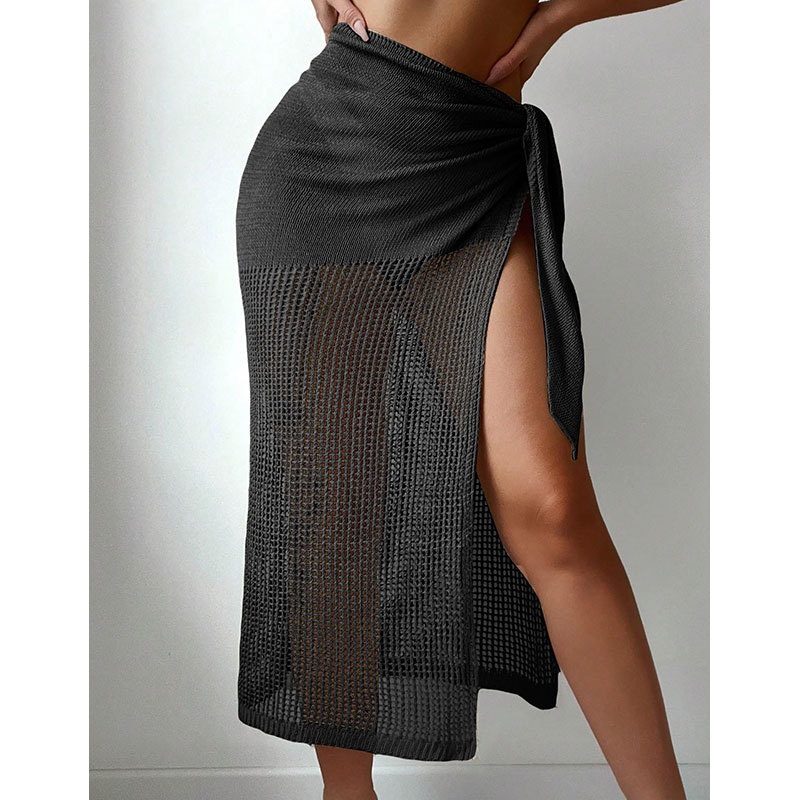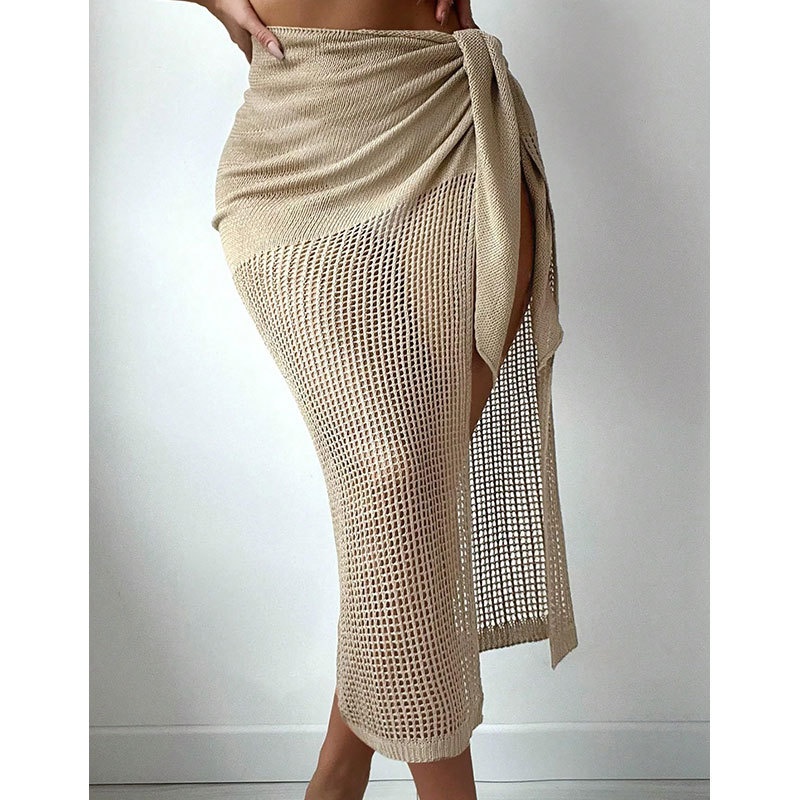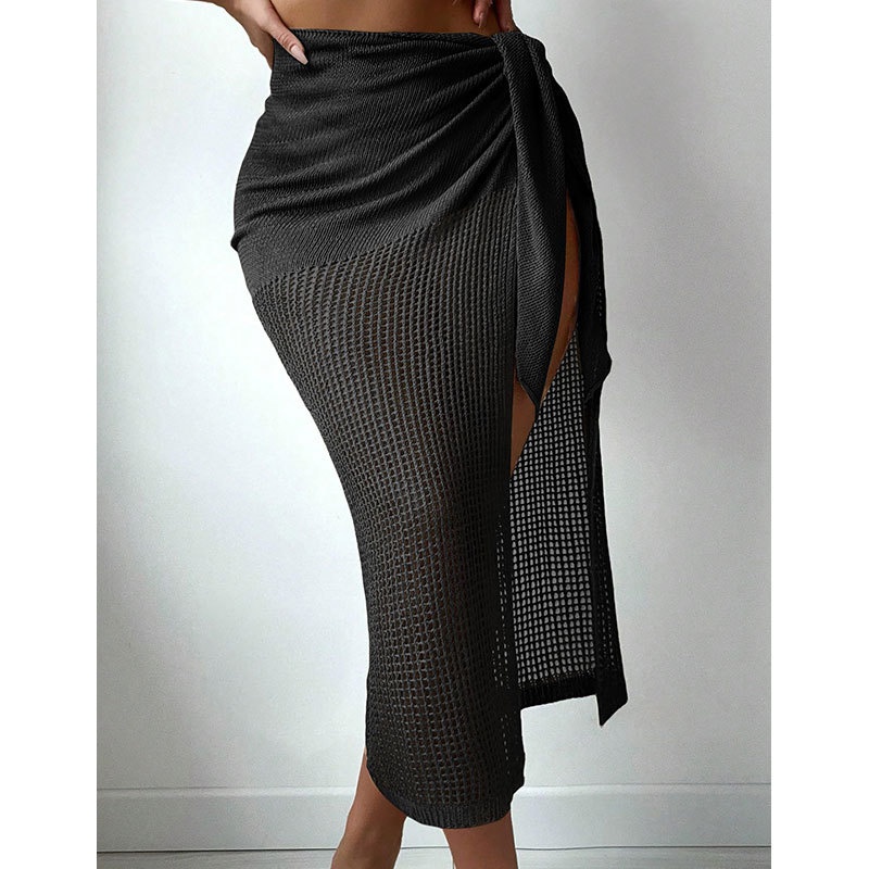 洋洋新款欧美跨境性感透视镂空绑带沙滩罩衫女半身包臀裹裙