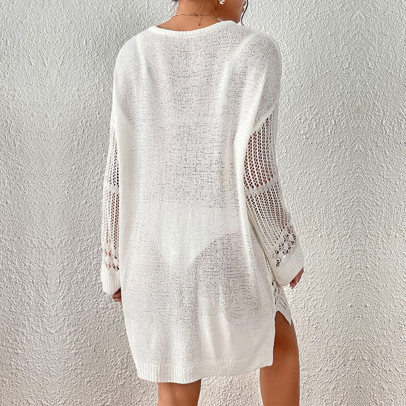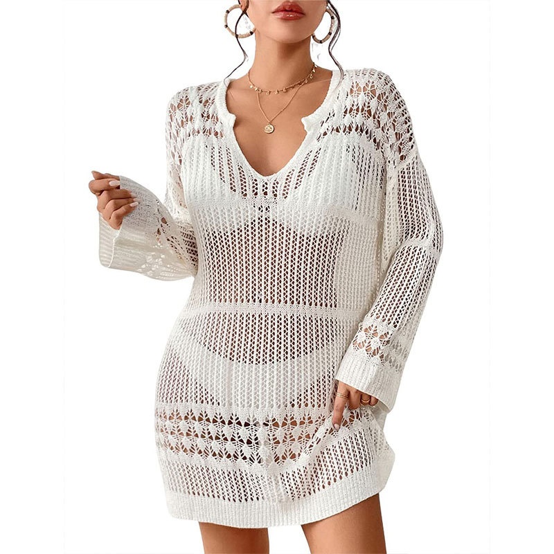 跨境新款沙滩罩衫性感镂空长袖U领度假防晒比基尼罩衫厂家
