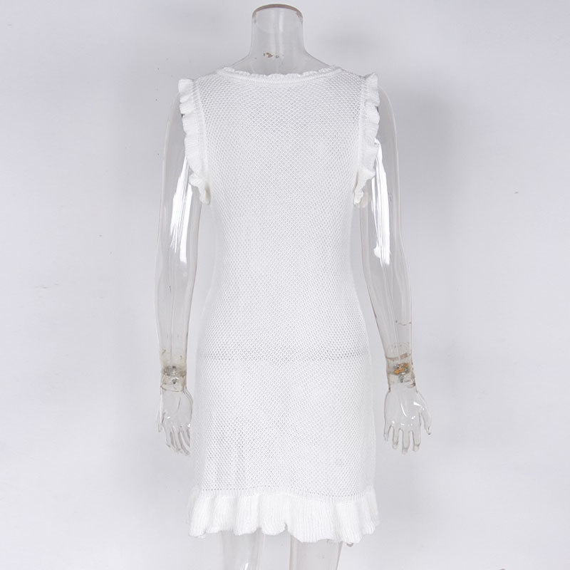 跨境沙滩裙 欧美纯色性感针织镂空沙滩比基尼泳衣罩衫厂家