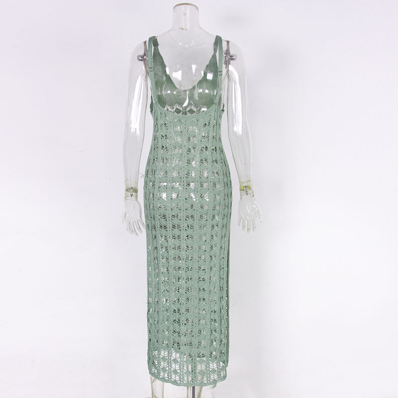 跨境新款比基尼吊带罩衫 镂空性感沟花泳衣外套沙滩长裙女