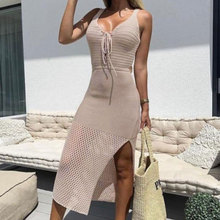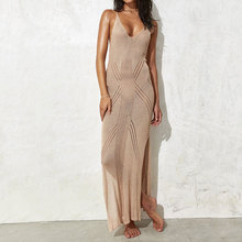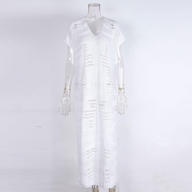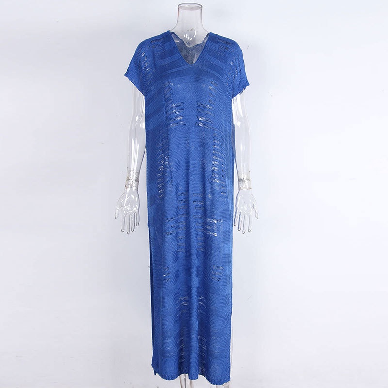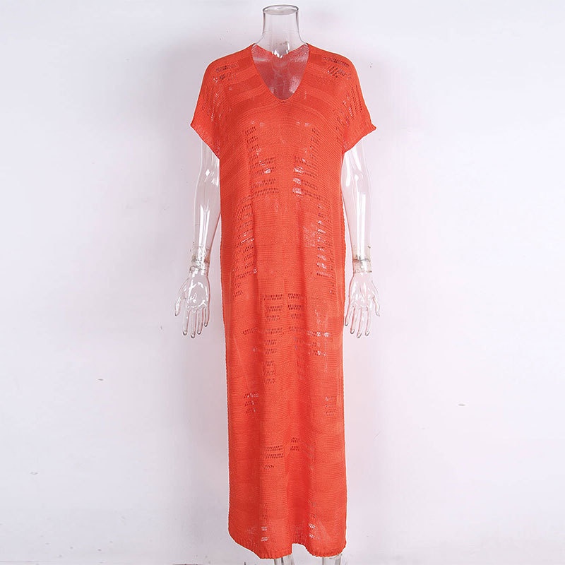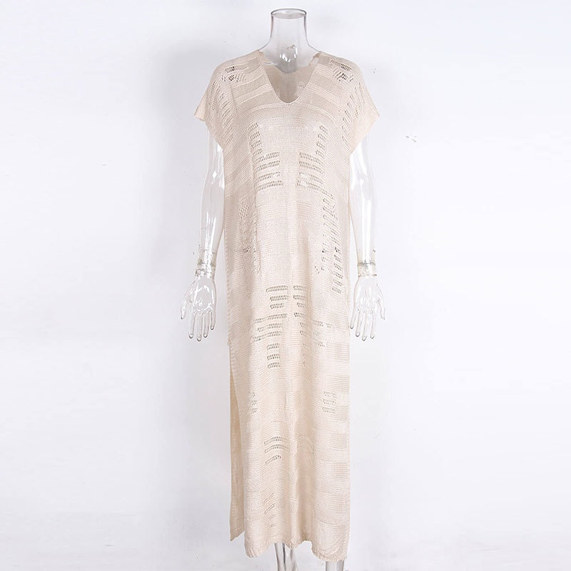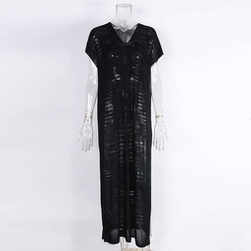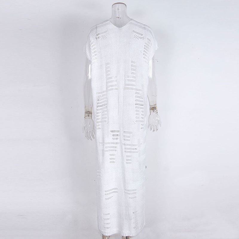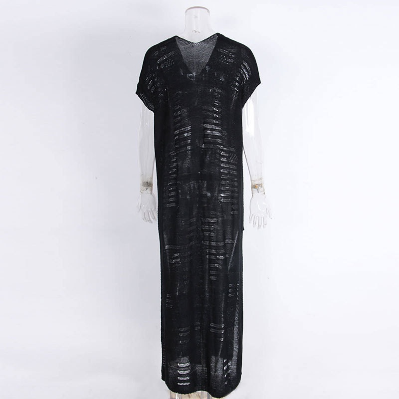 跨境防晒衣春夏新款欧美长款宽松纯色沙滩镂空针织罩衫