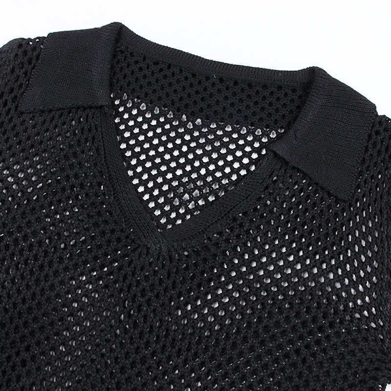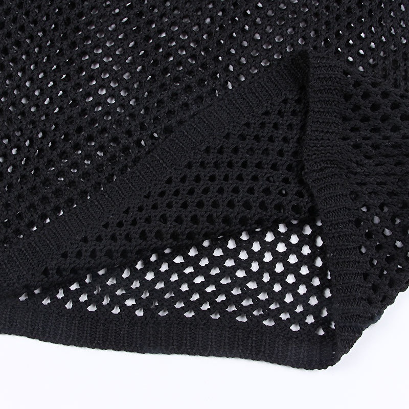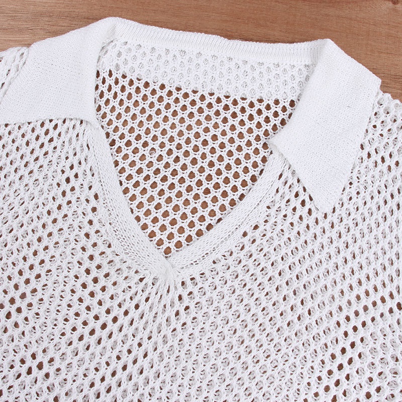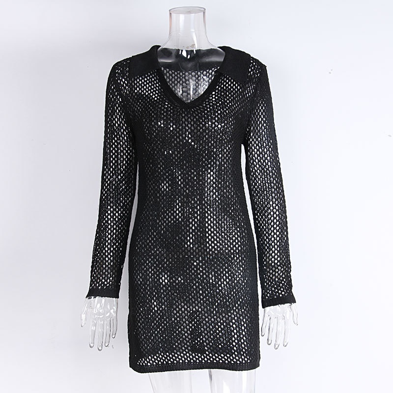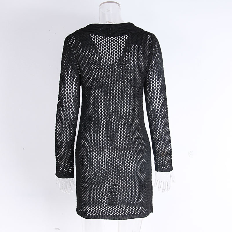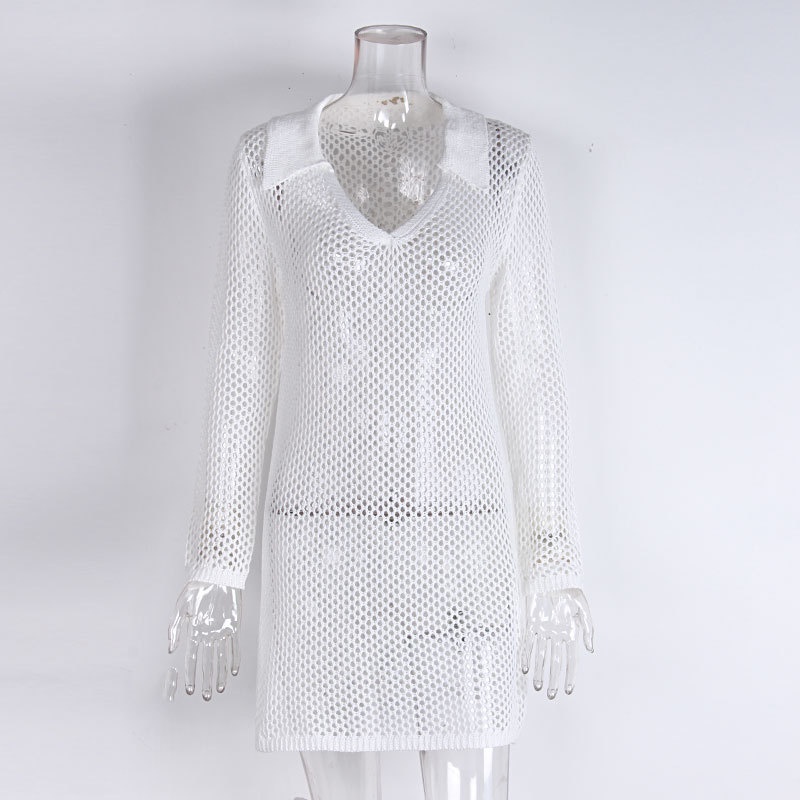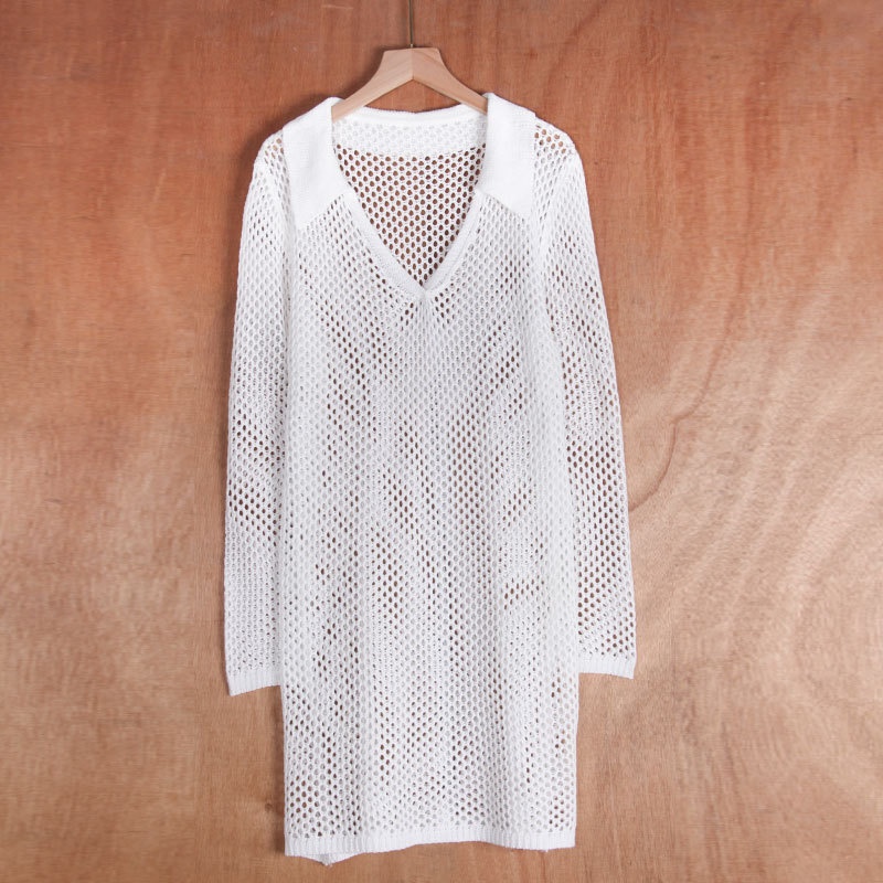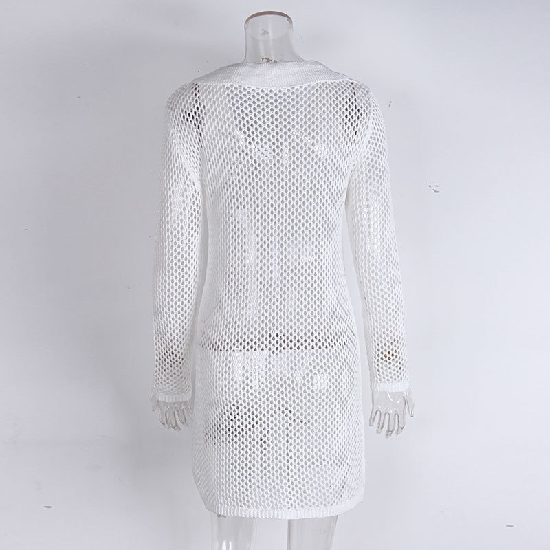 跨境新款镂空针织沙滩罩衫 欧美比基尼防晒外搭性感透视连衣裙V领