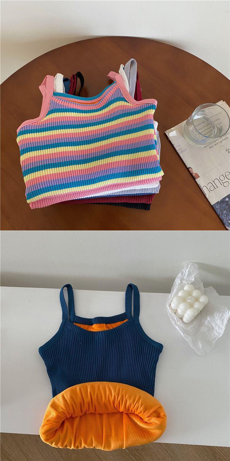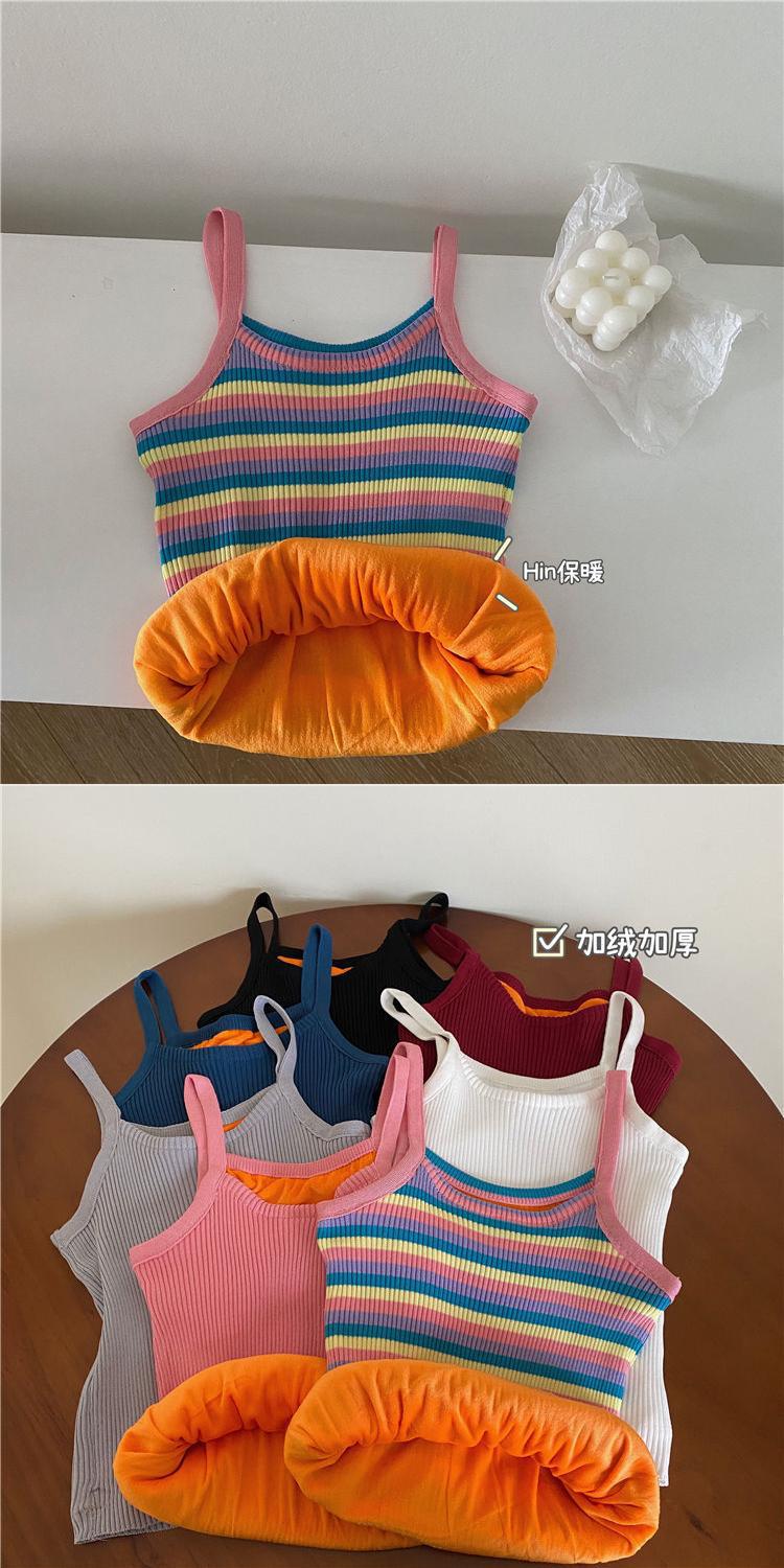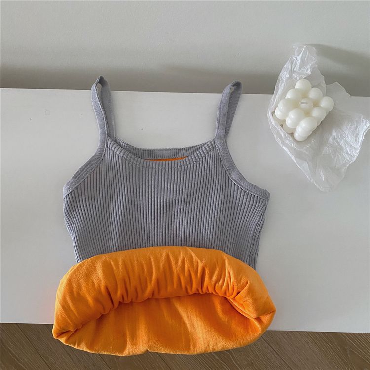 冬季新款加绒加厚保暖显瘦内搭短款紧身打底上衣针织吊带背心女潮