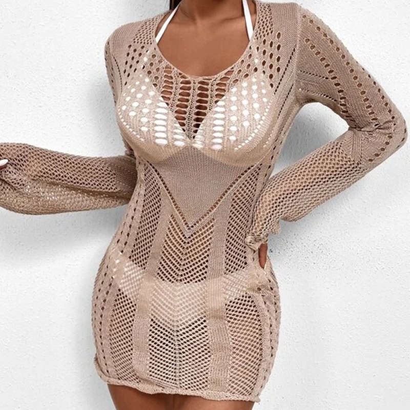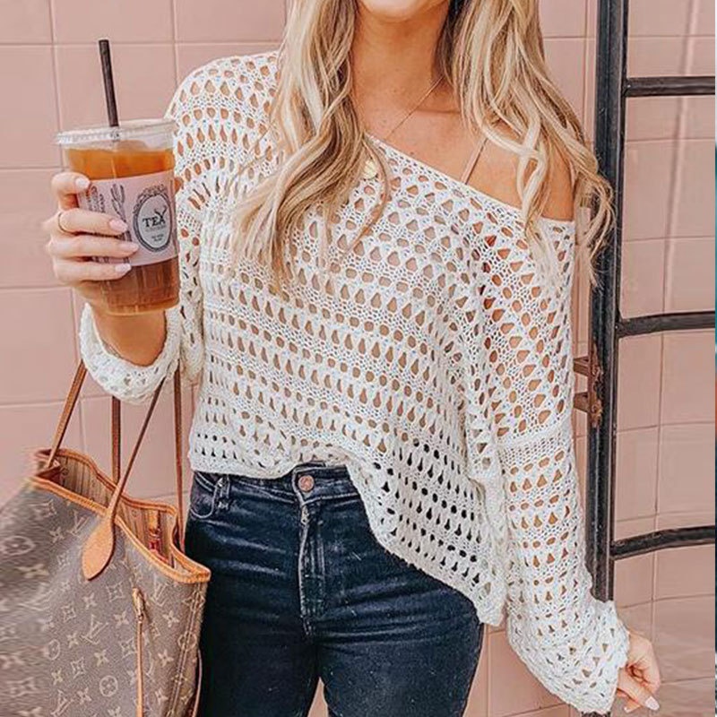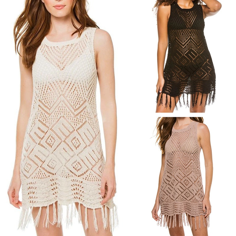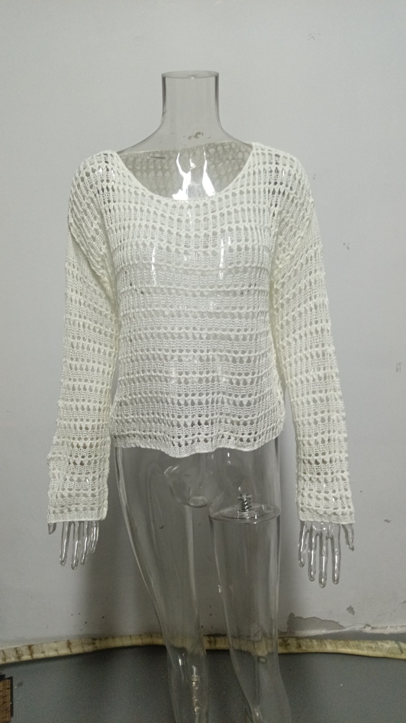 夏季镂空比基尼罩衫新款热卖白色针织宽松沙滩短上衣防晒衫