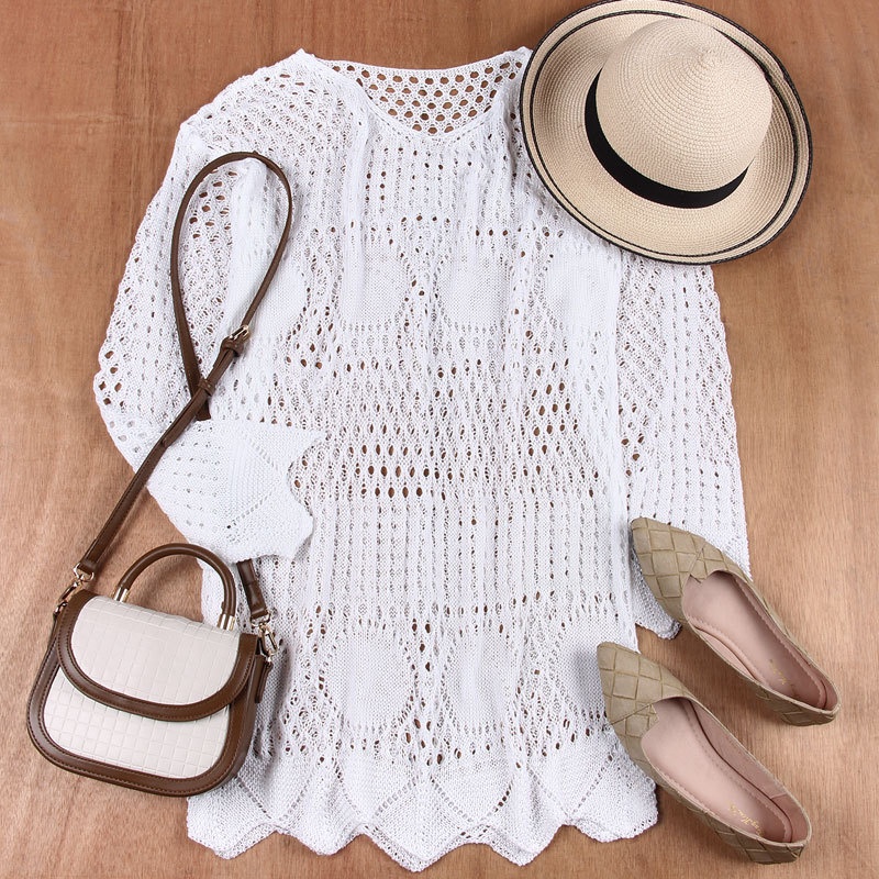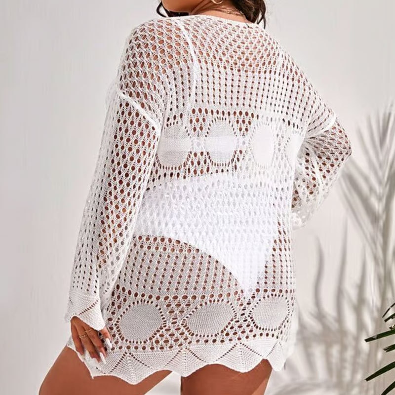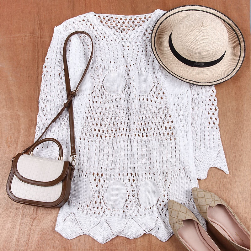 跨境新款镂空透视性感针织沙滩罩衫欧美比基尼泳衣防晒外搭