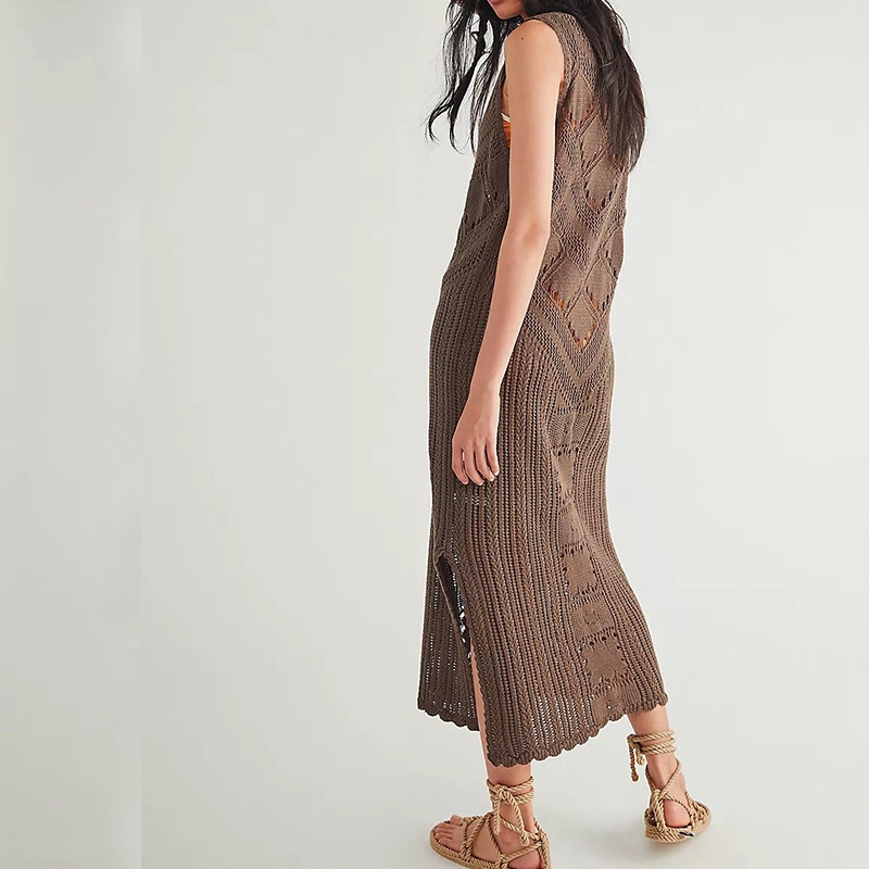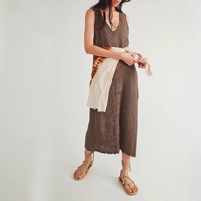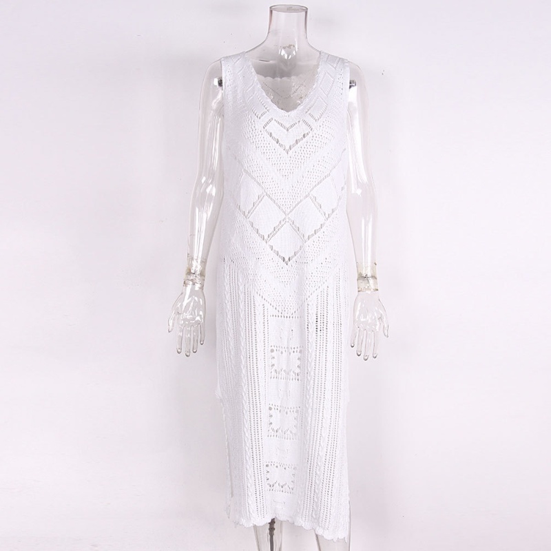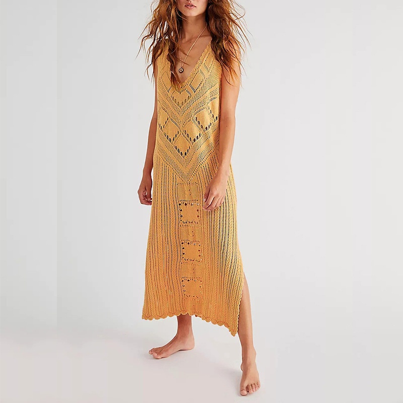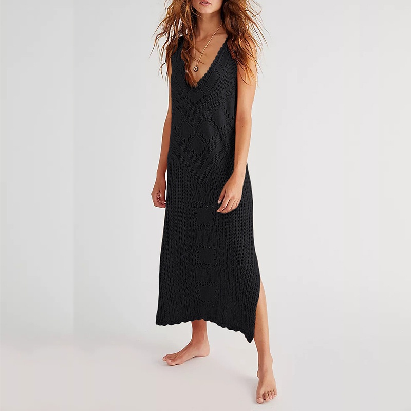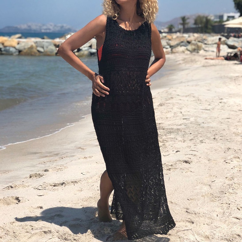 新款欧美沙滩罩衫针织镂空性感背心比基尼泳衣沙滩裙防晒衣