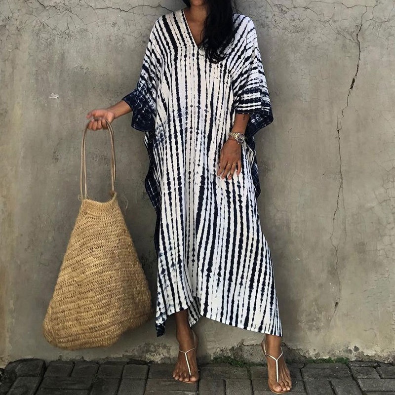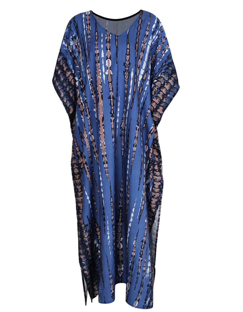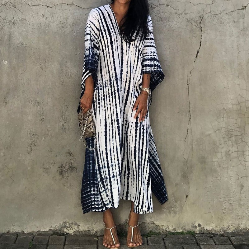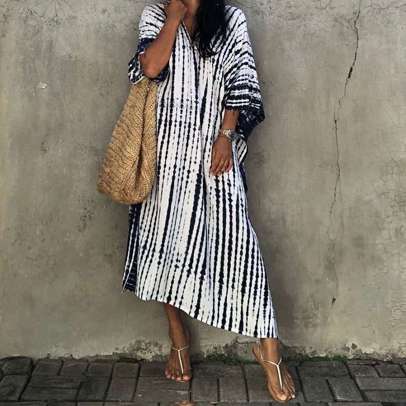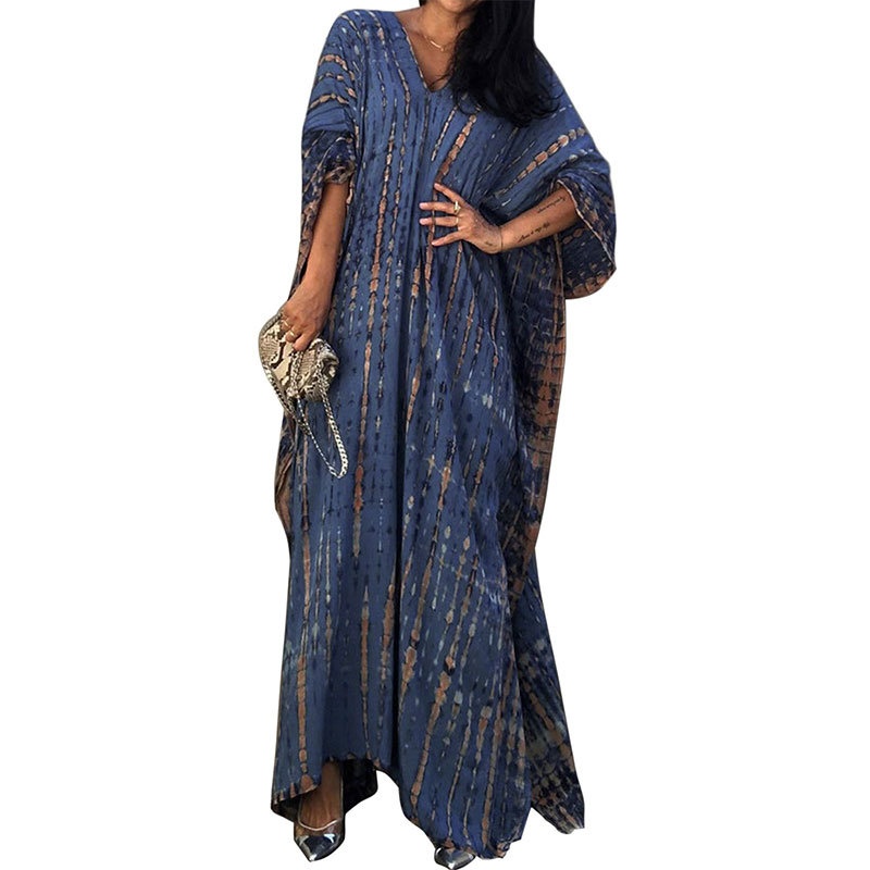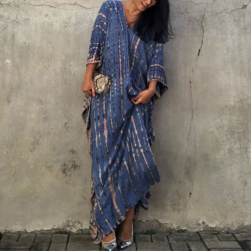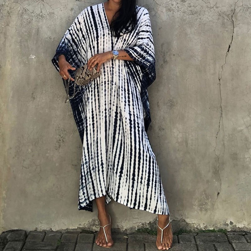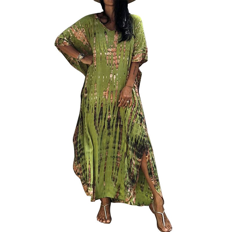 夏季新款欧美沙滩度假防晒衣人棉晕染花度假长袍连衣裙罩衫