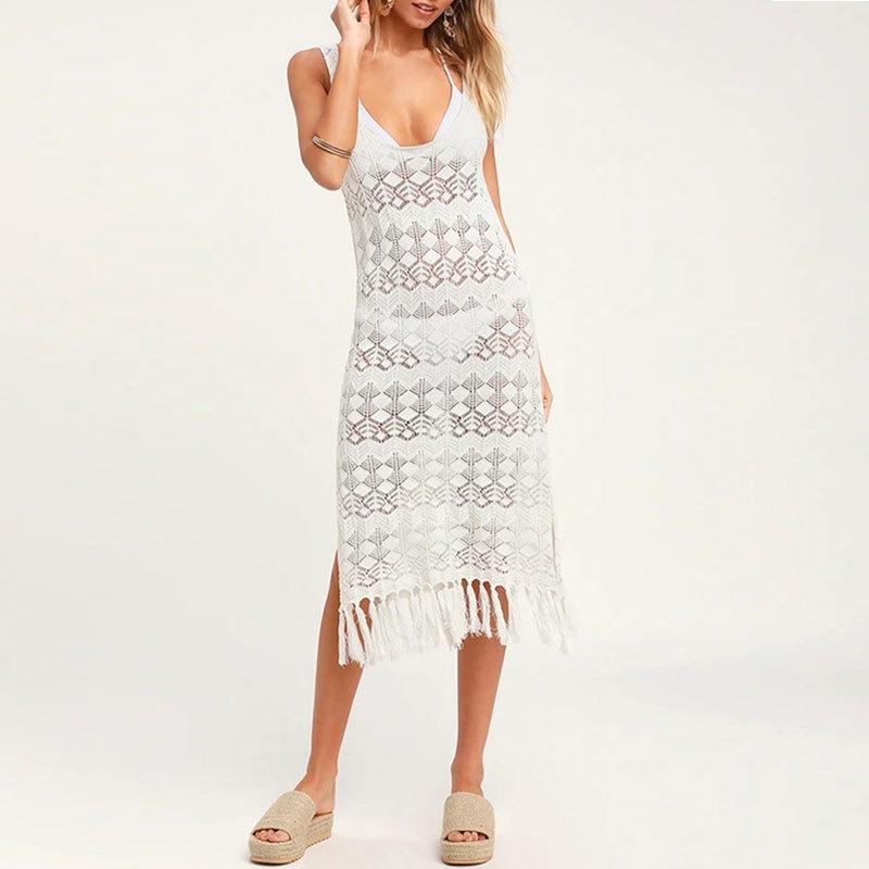 跨境新款沙滩罩衫针织宽松防晒海边度假比基尼泳衣背心外套