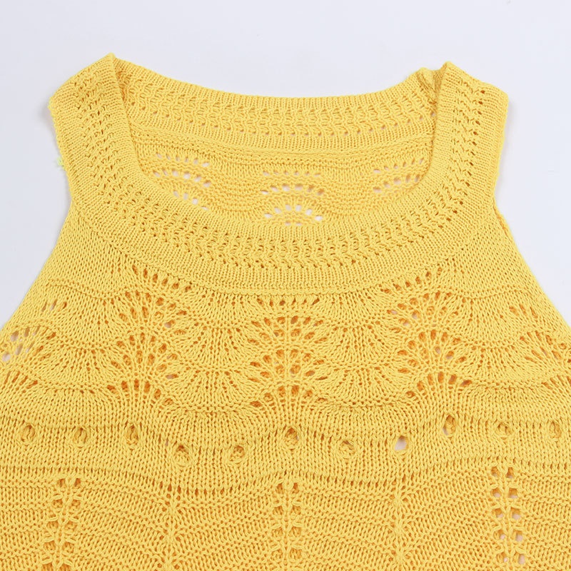 夏季新款针织吊带背心短款上衣镂空无袖设计感衫辣妹性感外穿内搭