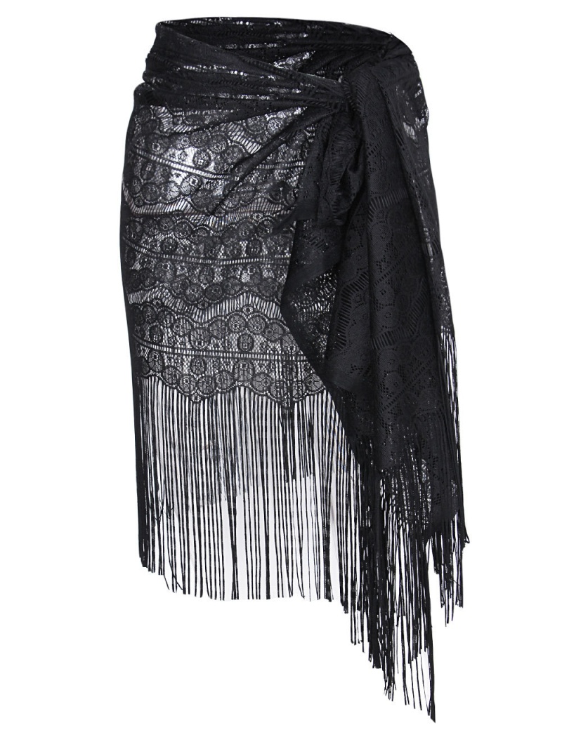 欧美流苏性感蕾丝沙滩防晒衣镂空半身裙比基尼罩衫披肩
