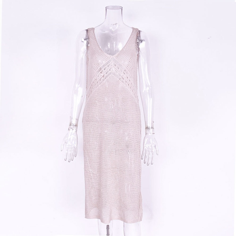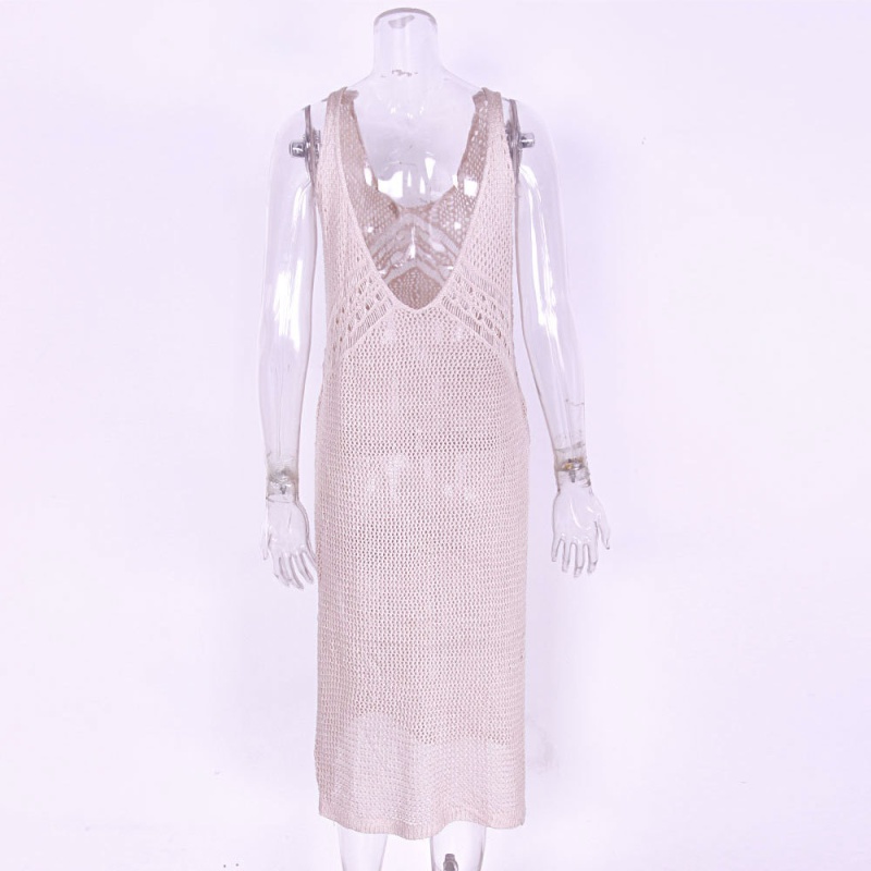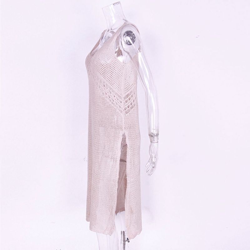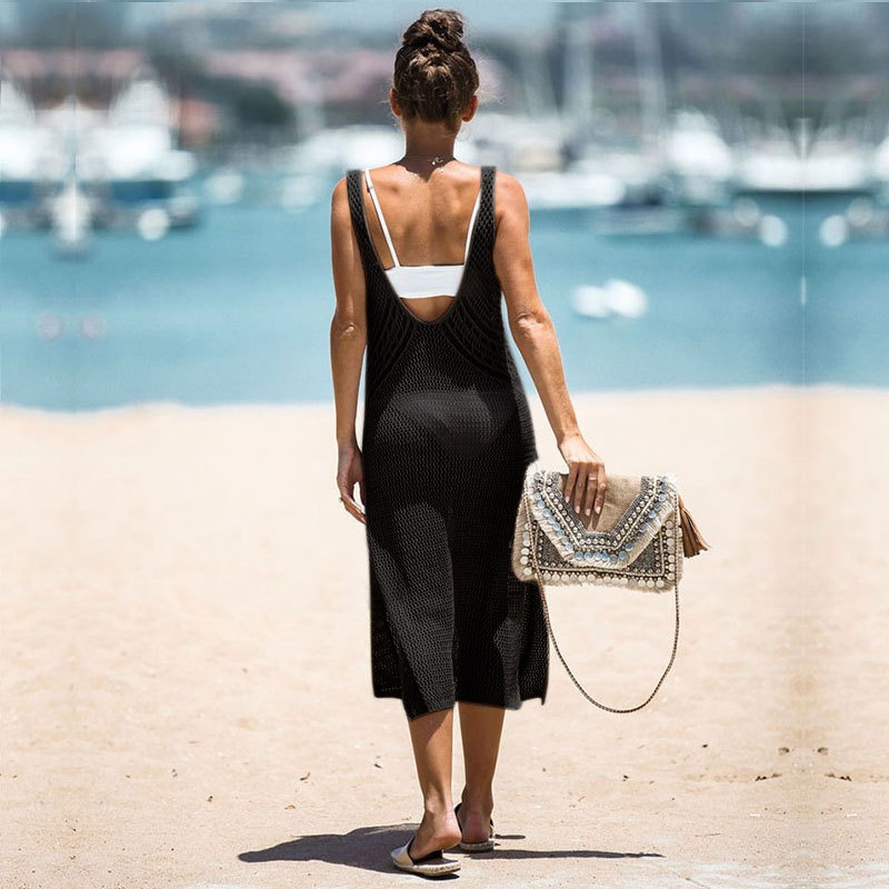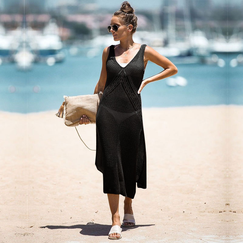 春夏新款跨境沙滩罩衫纯色开叉吊带衫比基尼长款沙滩裙女装