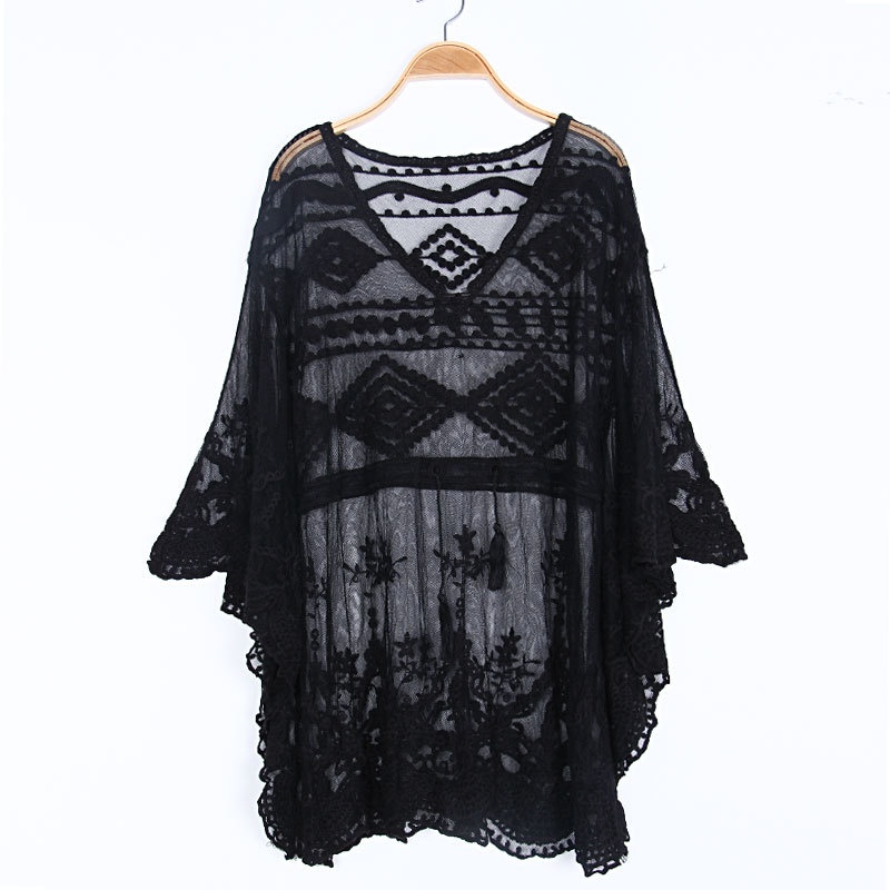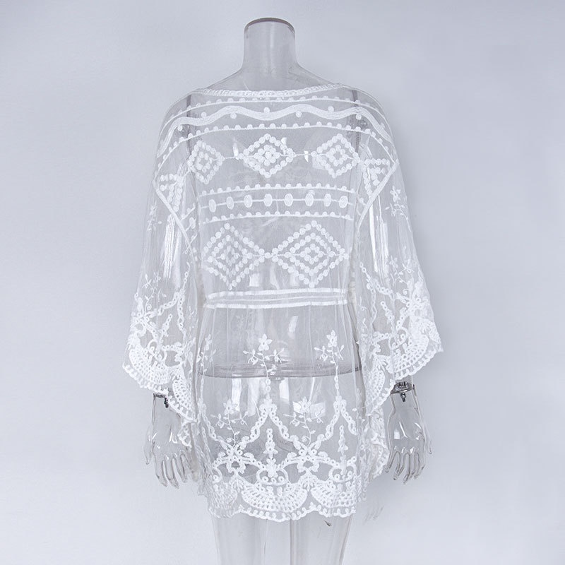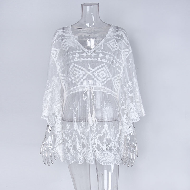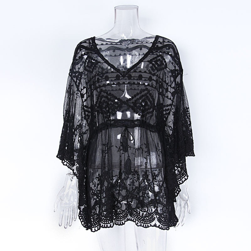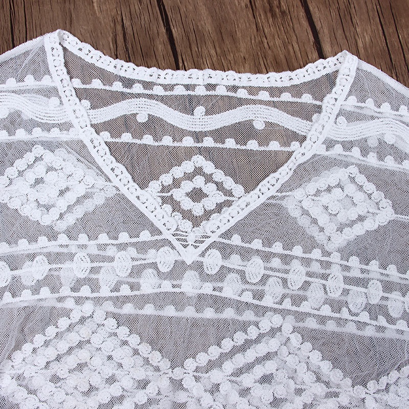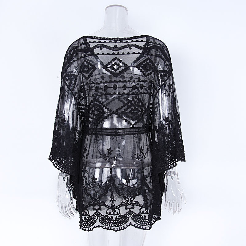 夏季新款针织衫女蕾丝网眼绣花比基尼外罩衫防晒度假沙滩裙